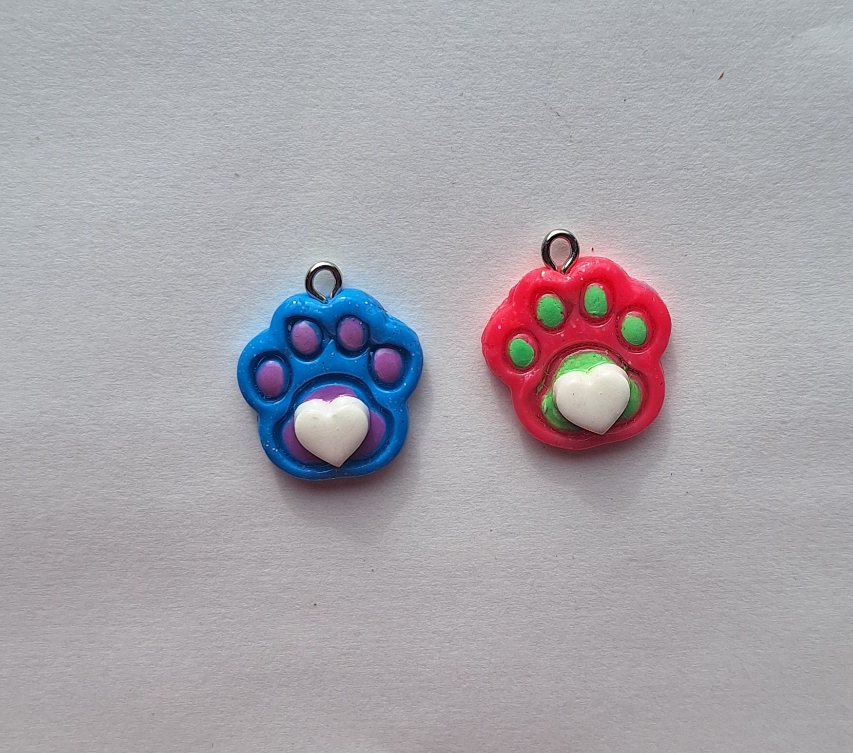 Kawaii pet paw print puppy cat charms / polymer clay heart paw print charms / kawaii pet charms / dog cat charms stitch marker