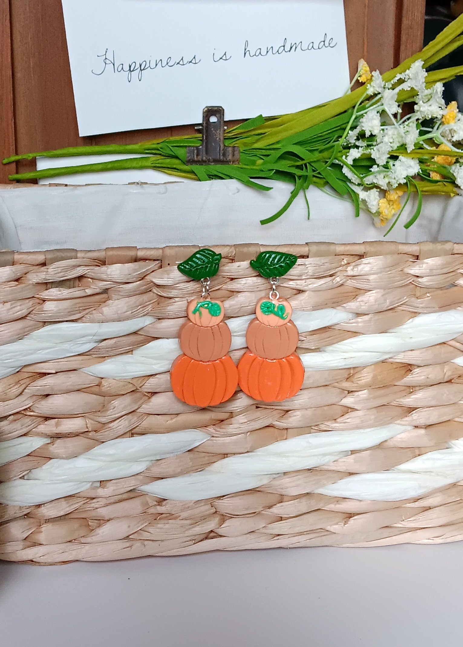 Add a touch of whimsy to your autumn wardrobe with these adorable Handmade Polymer Clay Pumpkin Stack Earrings. colors of the pumpkins evoke the warmth of the harvest season, while the lightweight design ensures comfortable wear all day long. Whether you're attending a fall festival or simply embracing the cozy vibes at home, these earrings are sure to be a conversation starter and a perfect complement to your favorite fall outfits. Handmade with love, these pumpkin stack earrings are a unique addition to your jewelry collection or a thoughtful gift for a fellow autumn enthusiast.