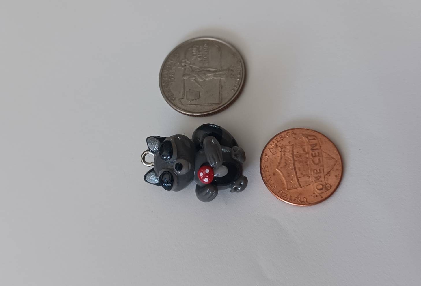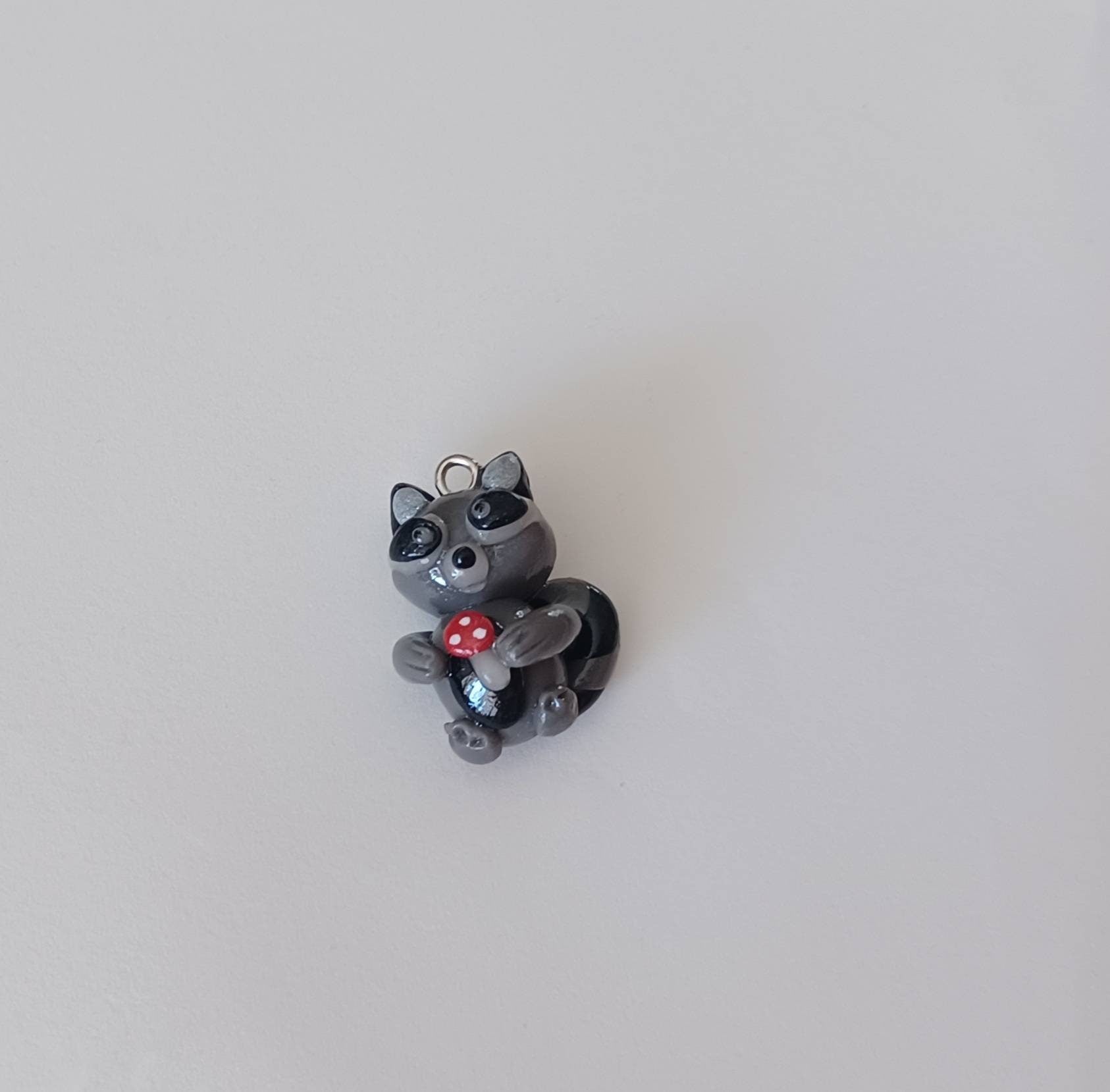 Kawaii raccoon charms / polymer clay raccoon with mushroom charms / kawaii animal charms / kawaii raccoon jewelry