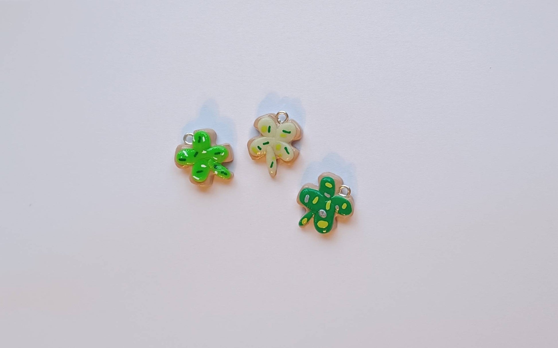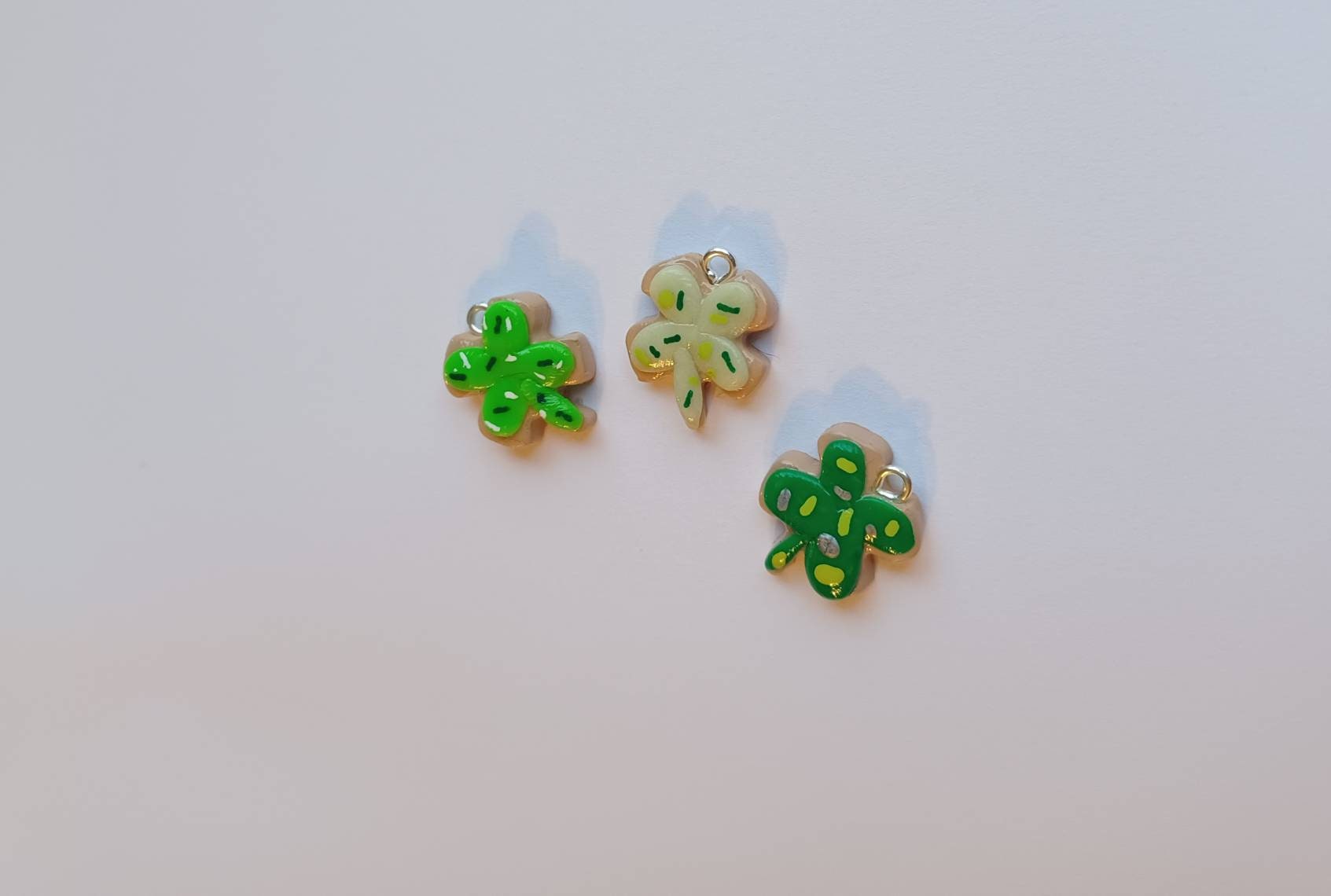 Kawaii st Patrick's day sugar cookie clover charms / polymer clay cookie charms / kawaii food charms / kawaii food jewelry / irish charms