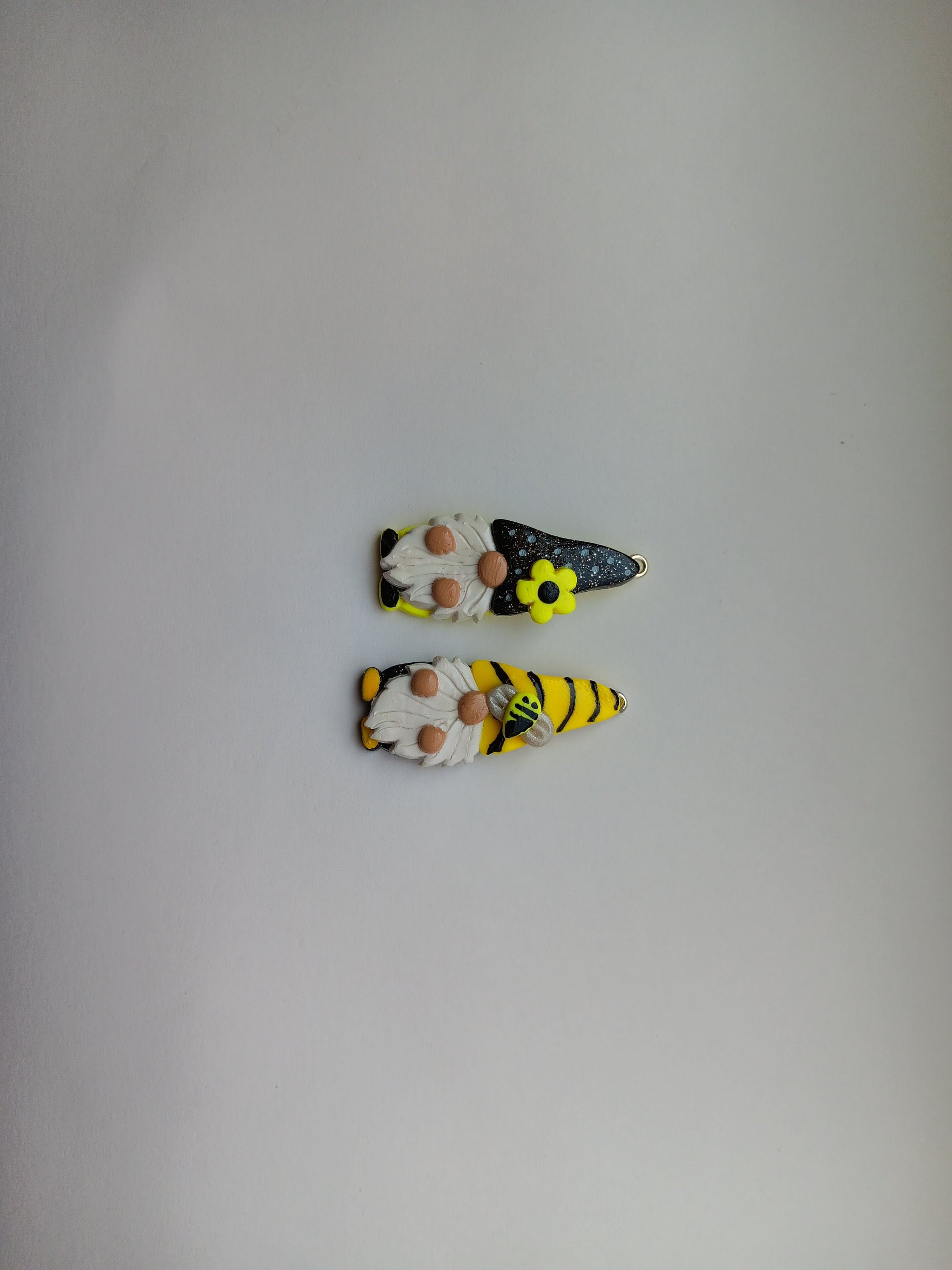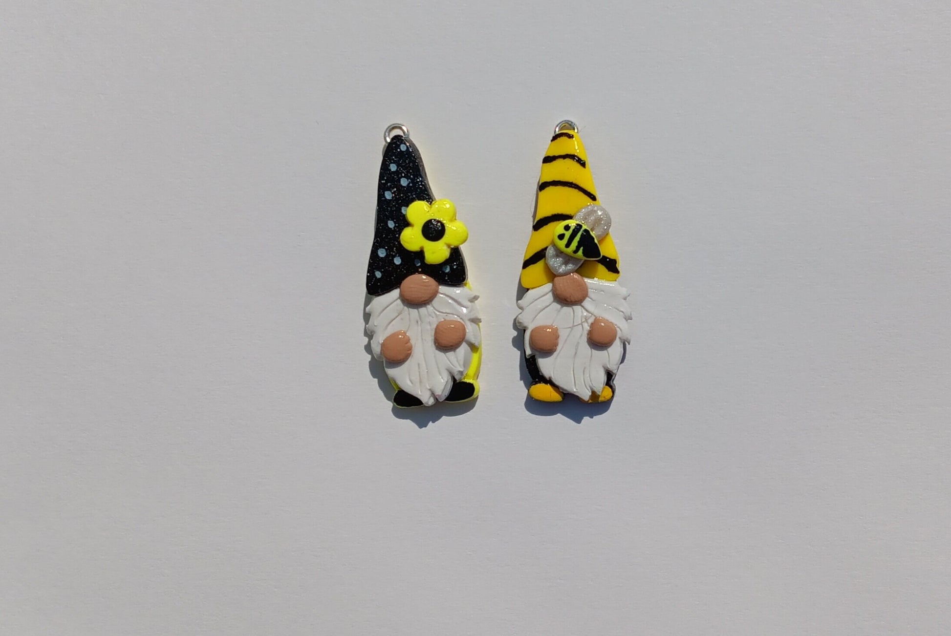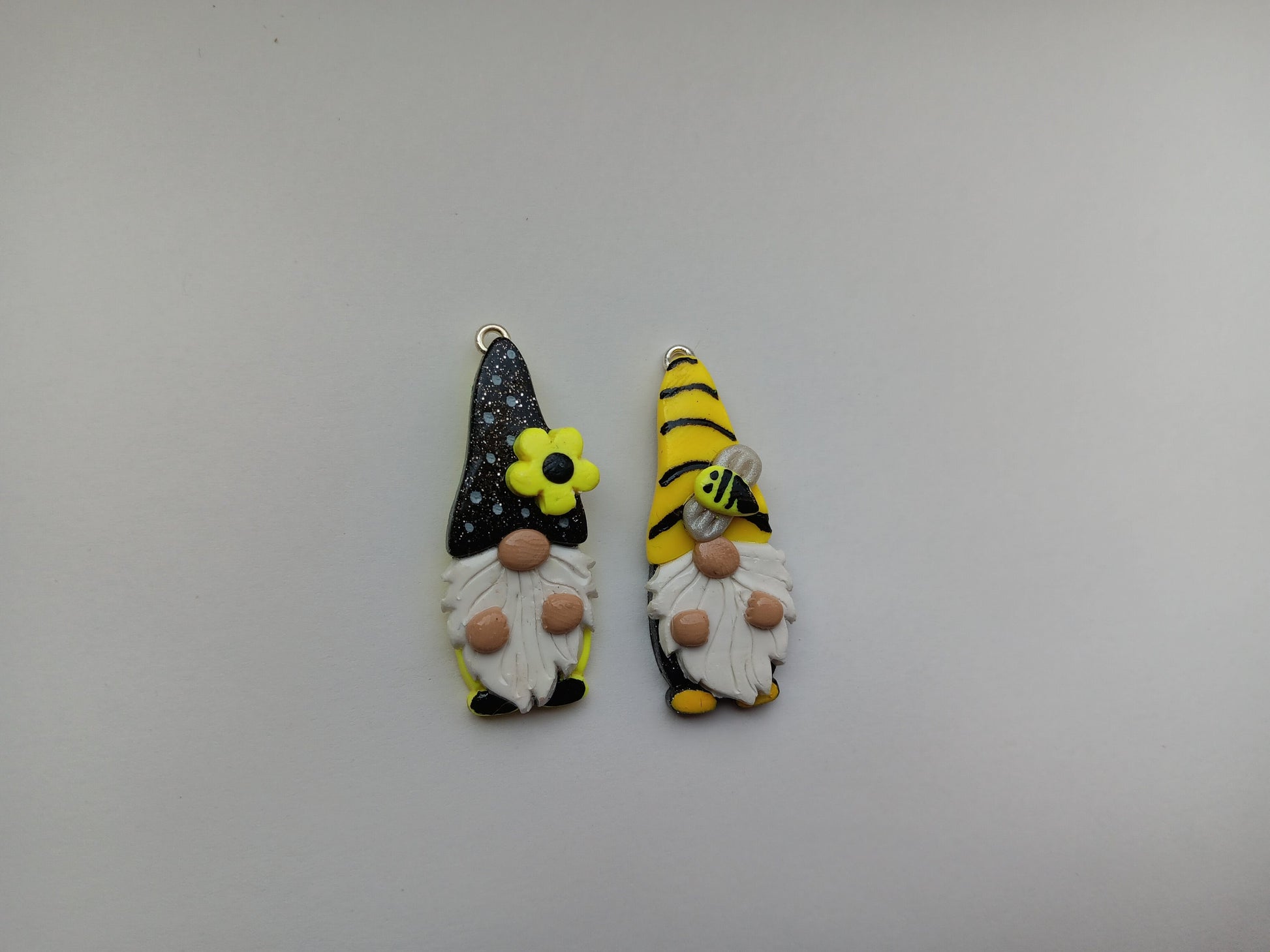 Kawaii summer bee daisy gnome charms / polymer clay floral daisy gnome charms / bumblebee gnome charms / black yellow summer gnome charms