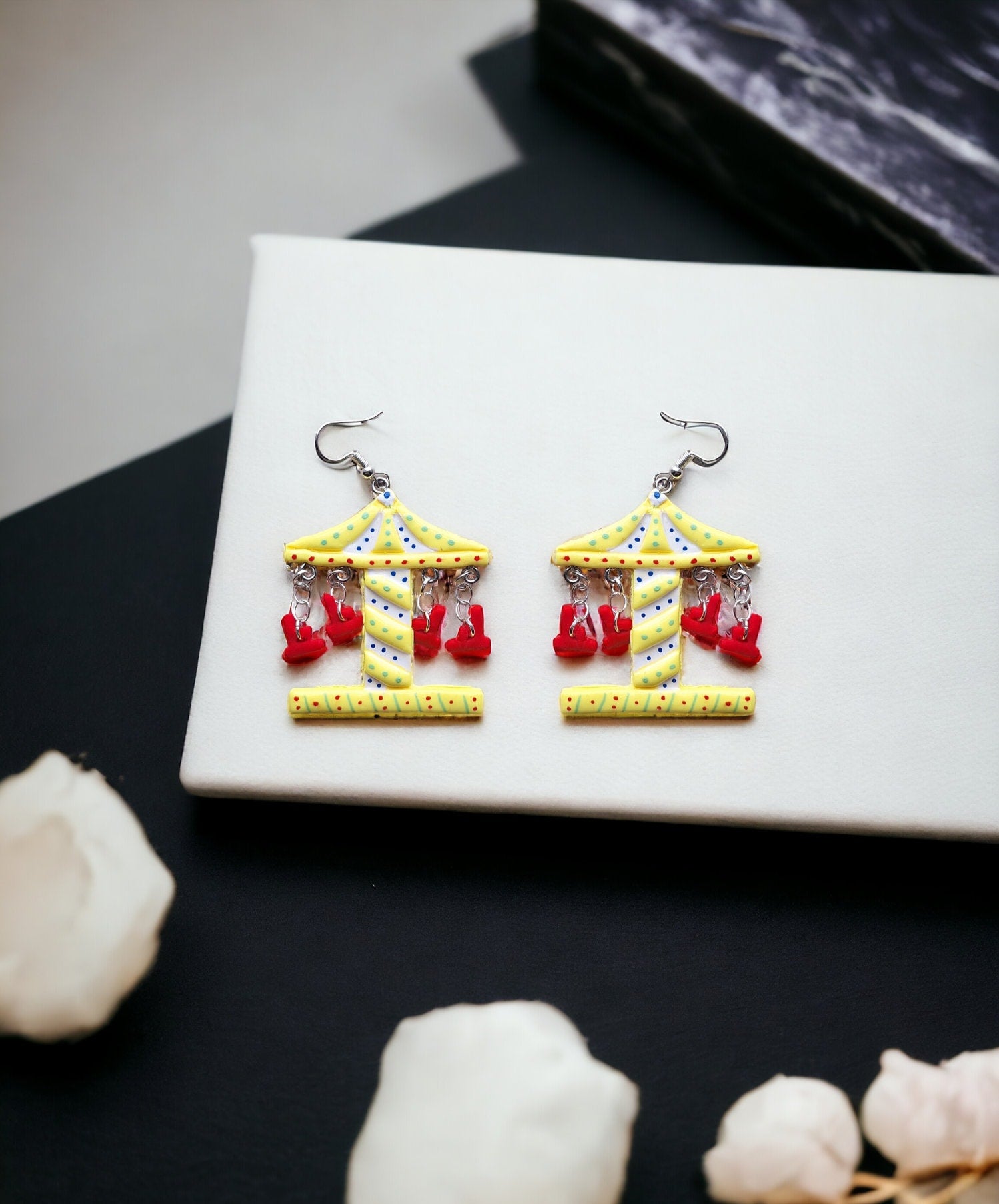 Kawaii swing carousel earrings / polymer clay dangle earrings / clay merry go round carousel jewelry / clay carnival fair earrings
