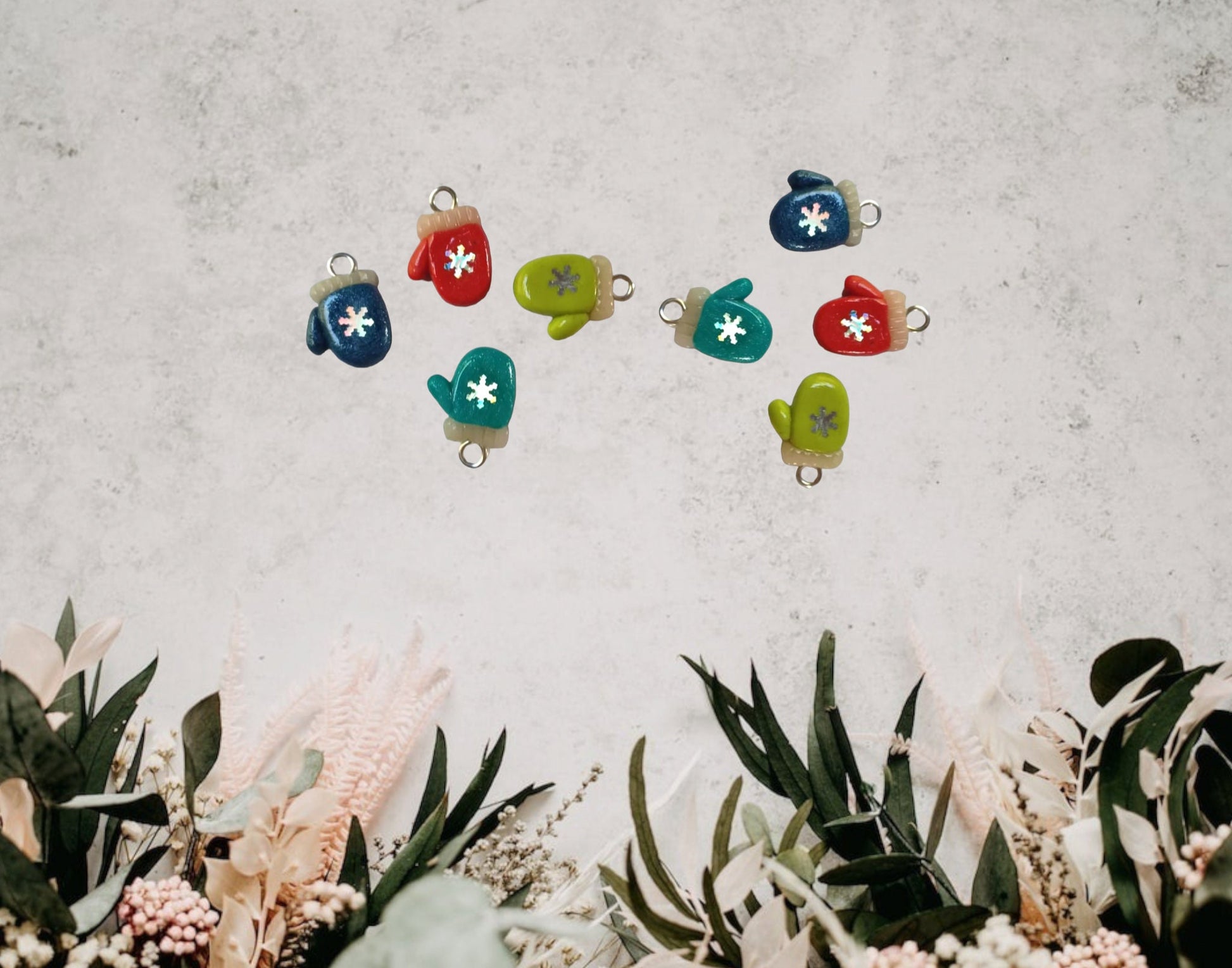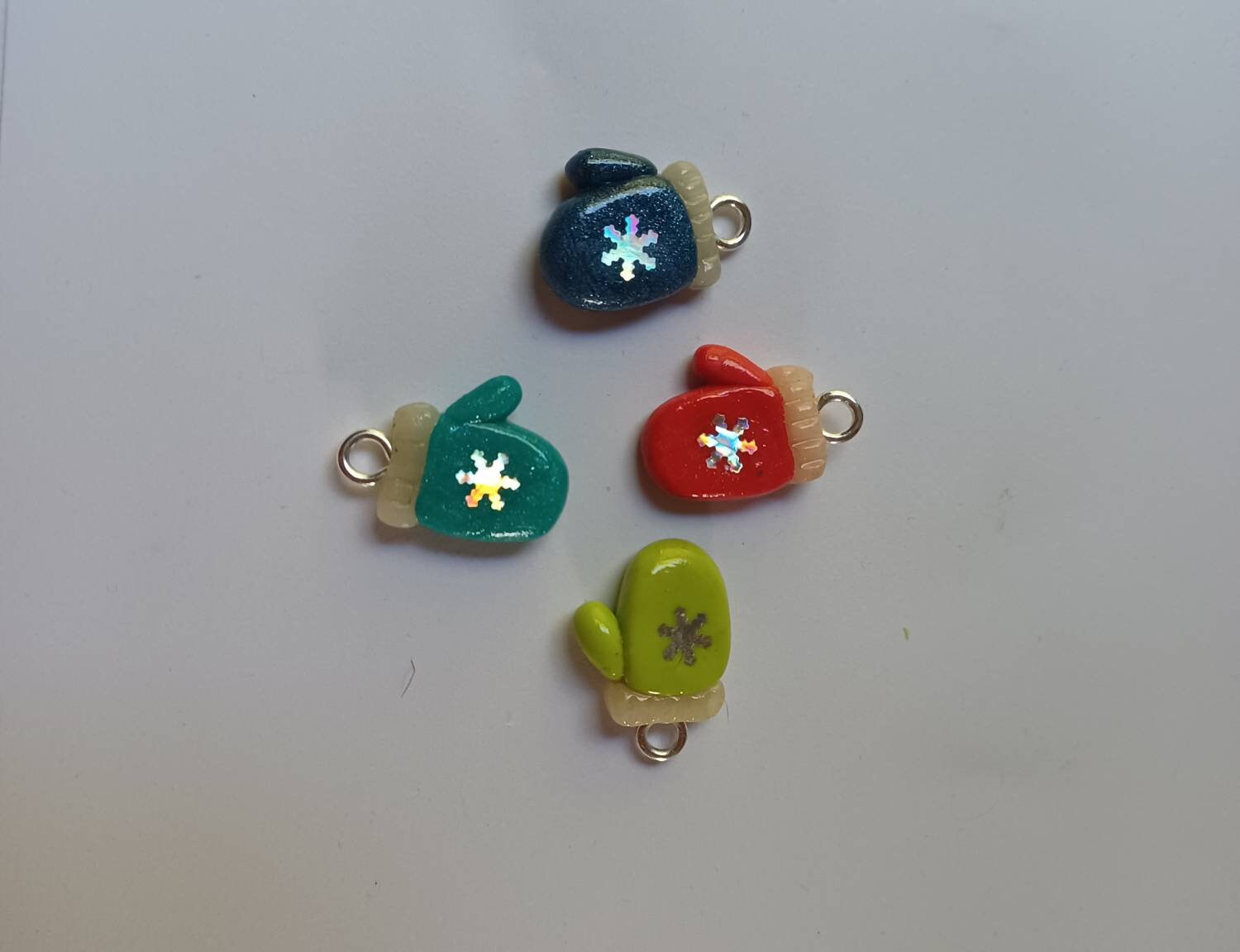 Kawaii winter mittens charm set / polymer clay mitten charms / Christmas jewelry charms / Santa charm / Santa hat