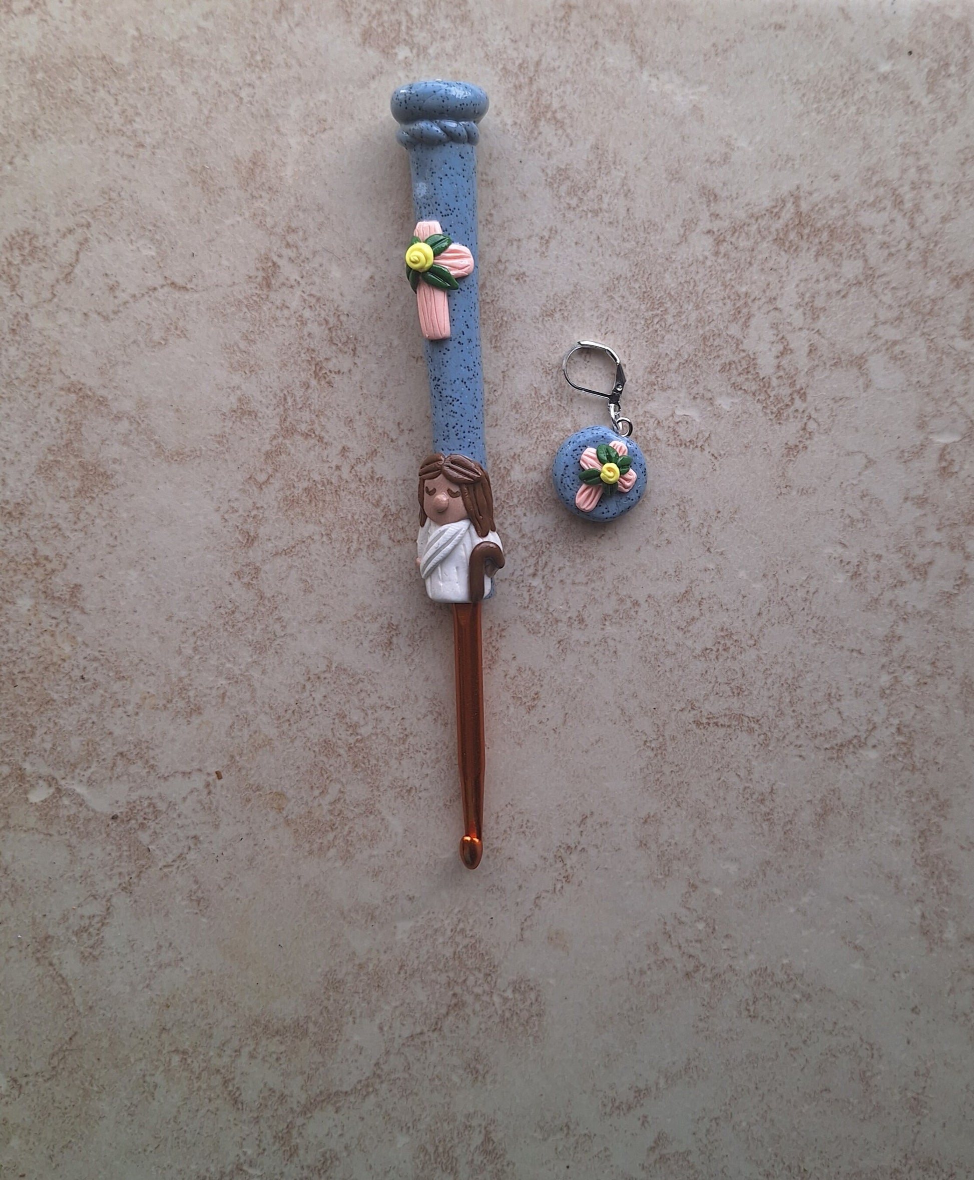 **metal part may vary in color*** hand molded polymer clay crochet hooks.