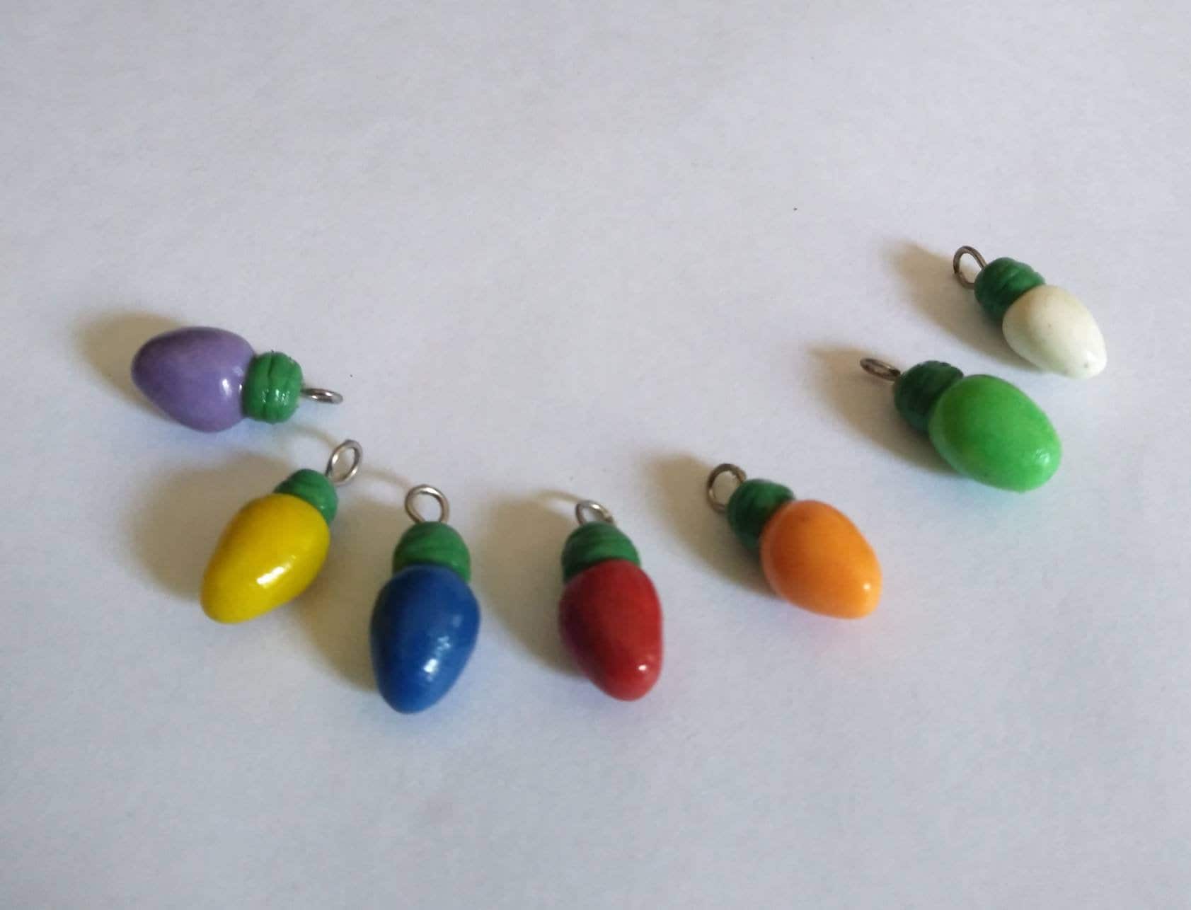 Polymer clay Christmas lights charm set / polymer clay Christmas holiday charms jewelry stitch marker progress keeper notions