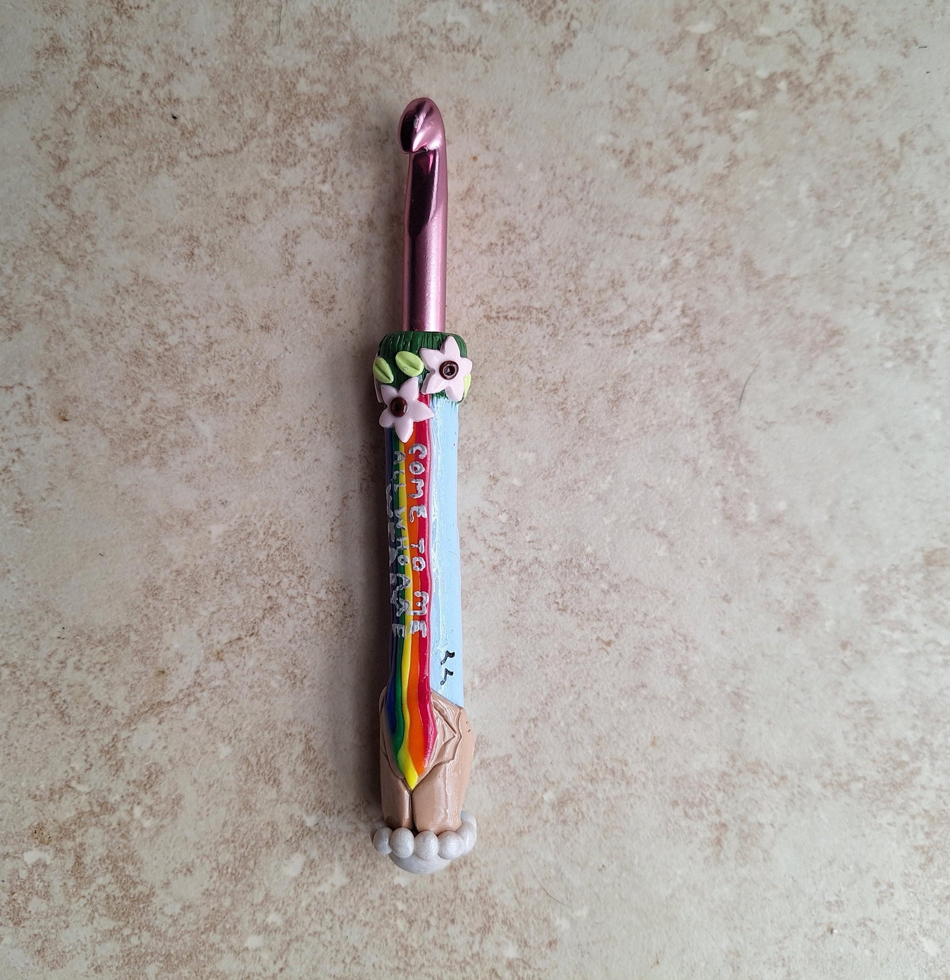 **metal part may vary in color*** hand molded polymer clay crochet hooks.