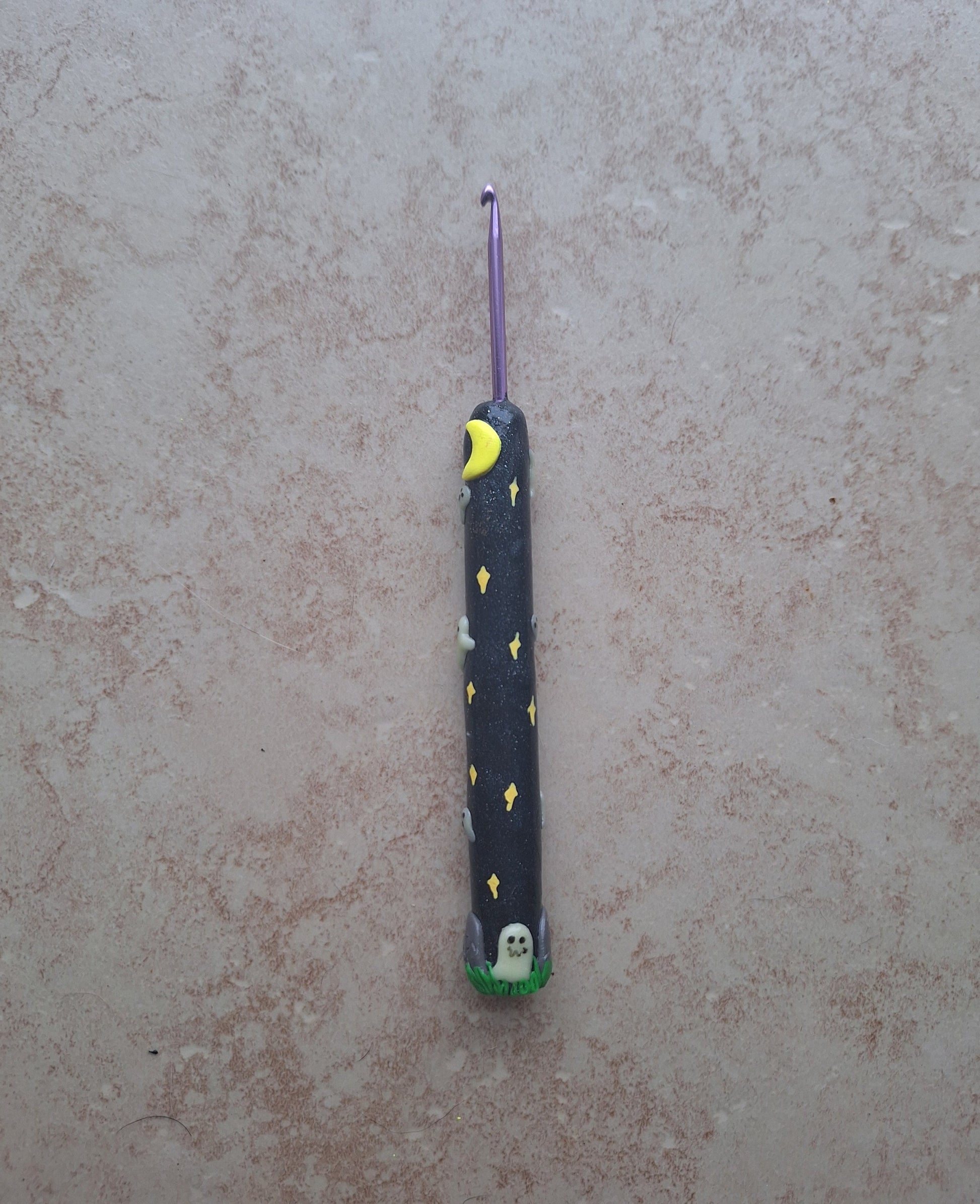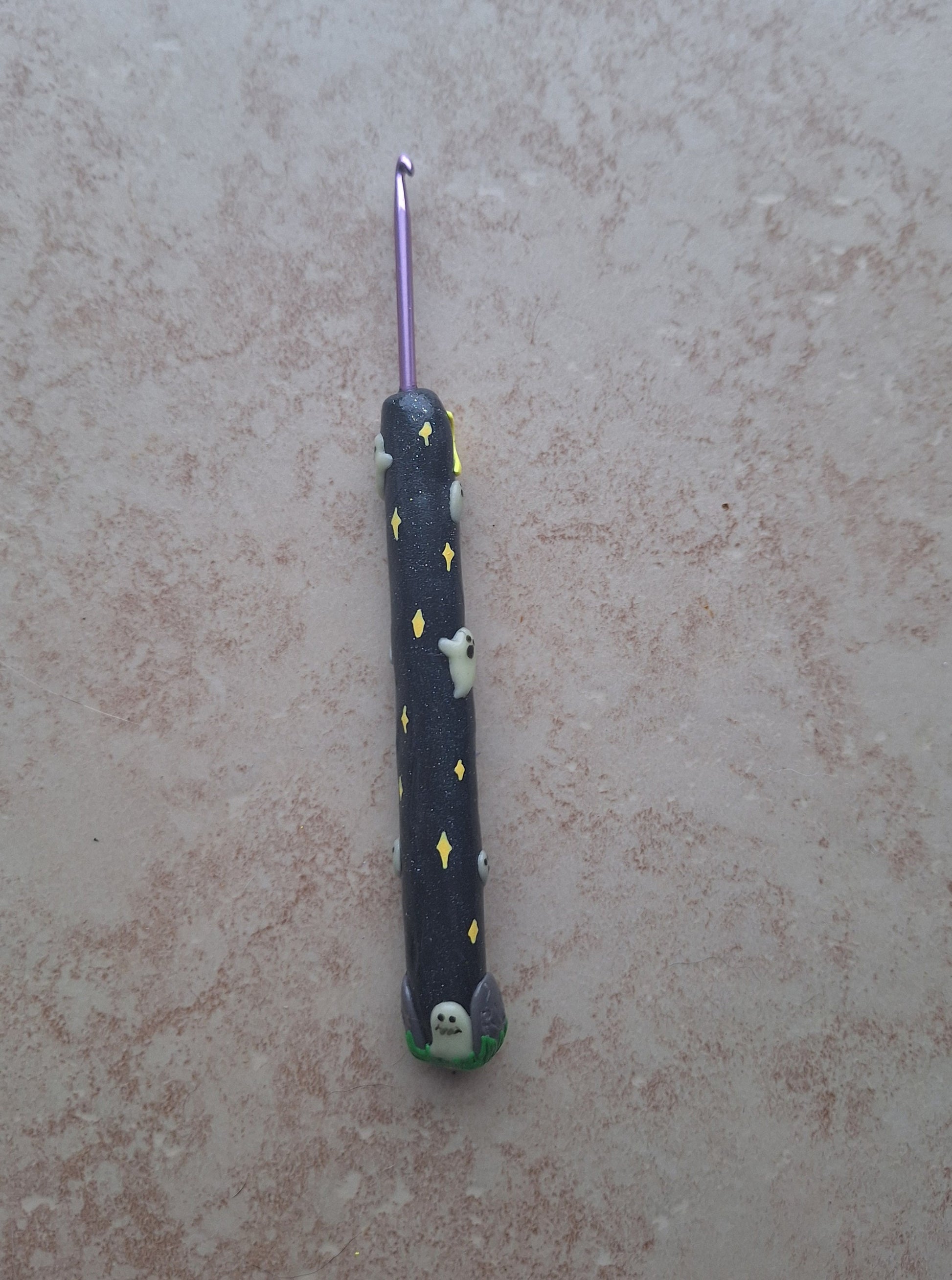 Polymer clay ghost graveyard scene Halloween holiday crochet hook