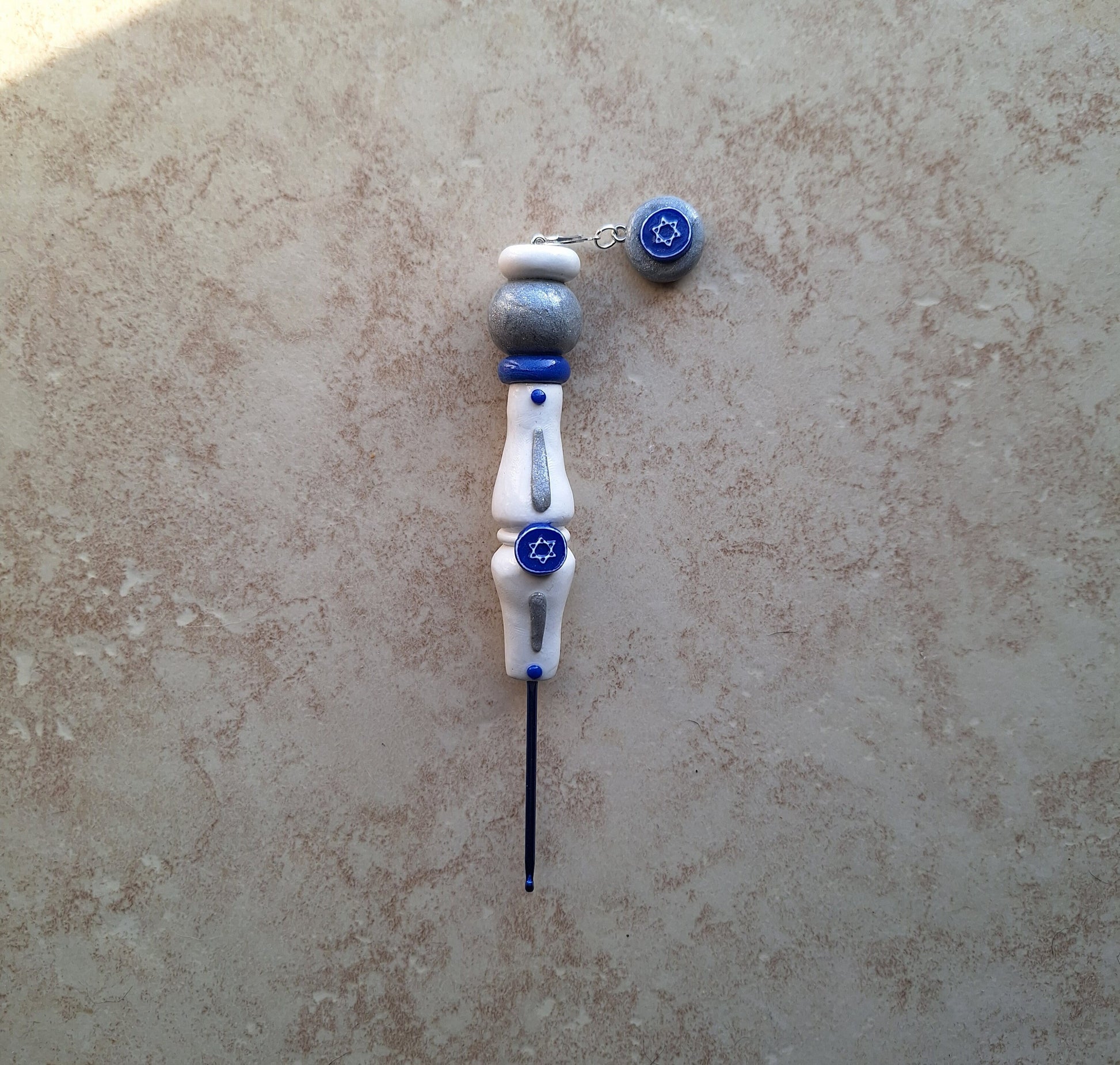**metal part may vary in color*** hand molded polymer clay crochet hooks.