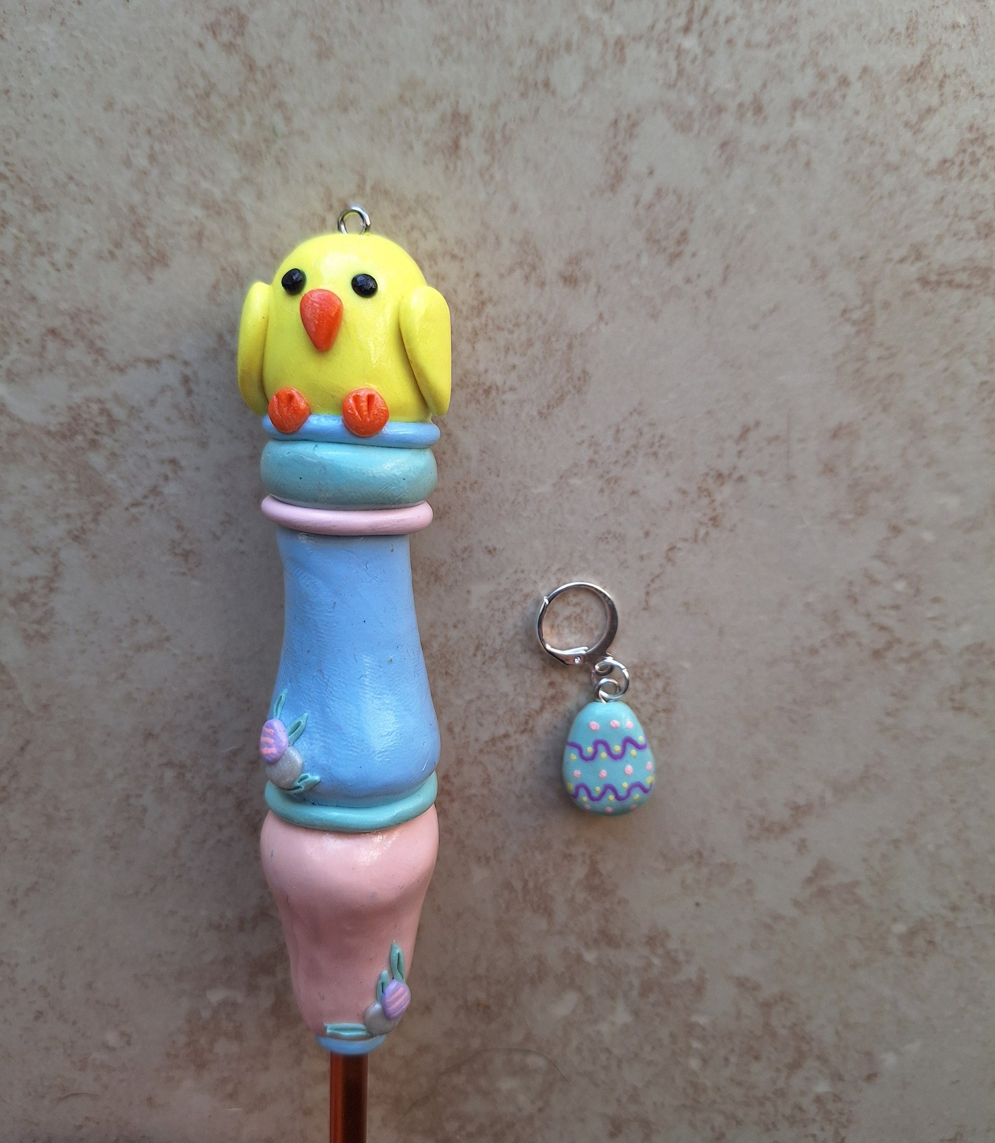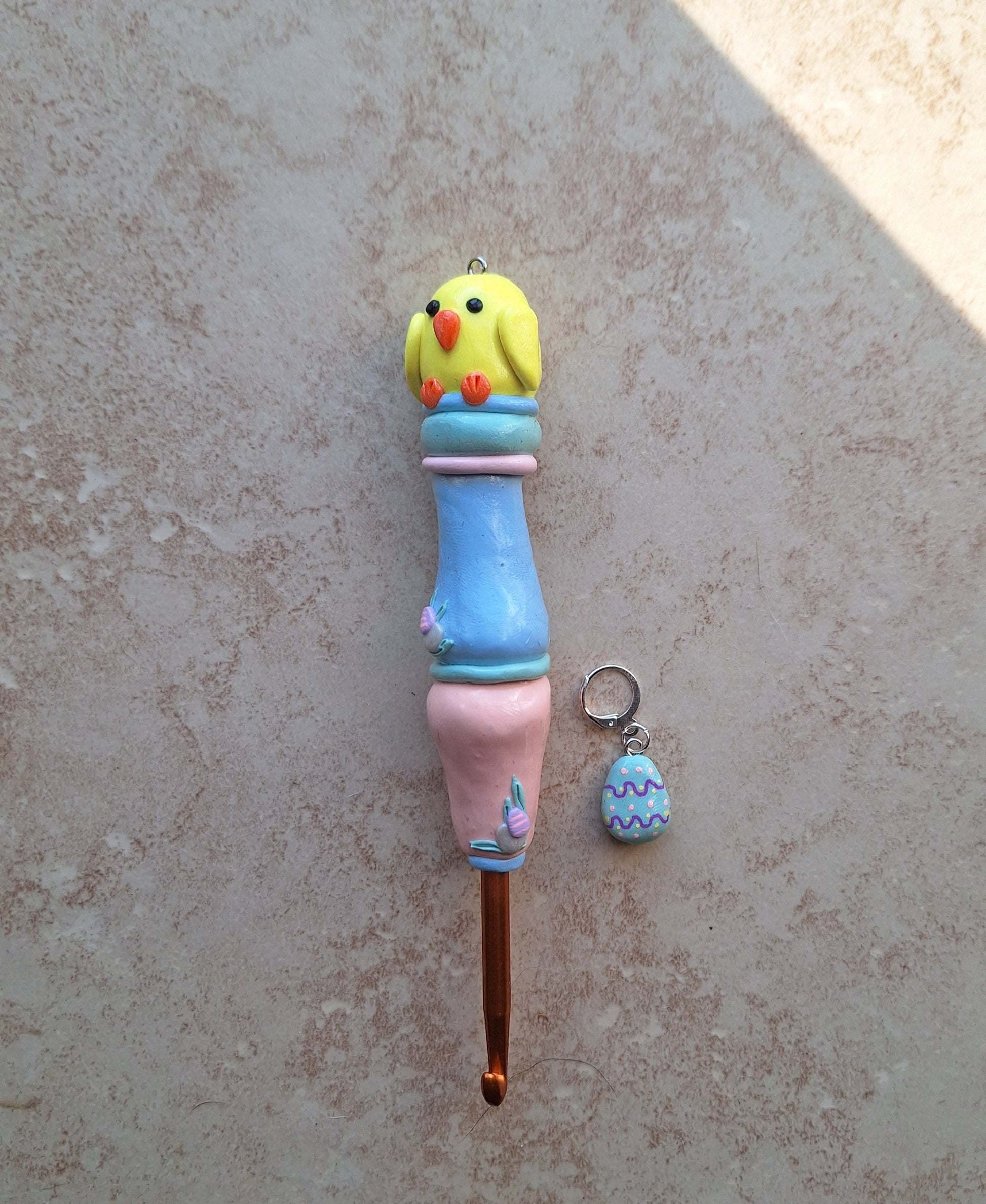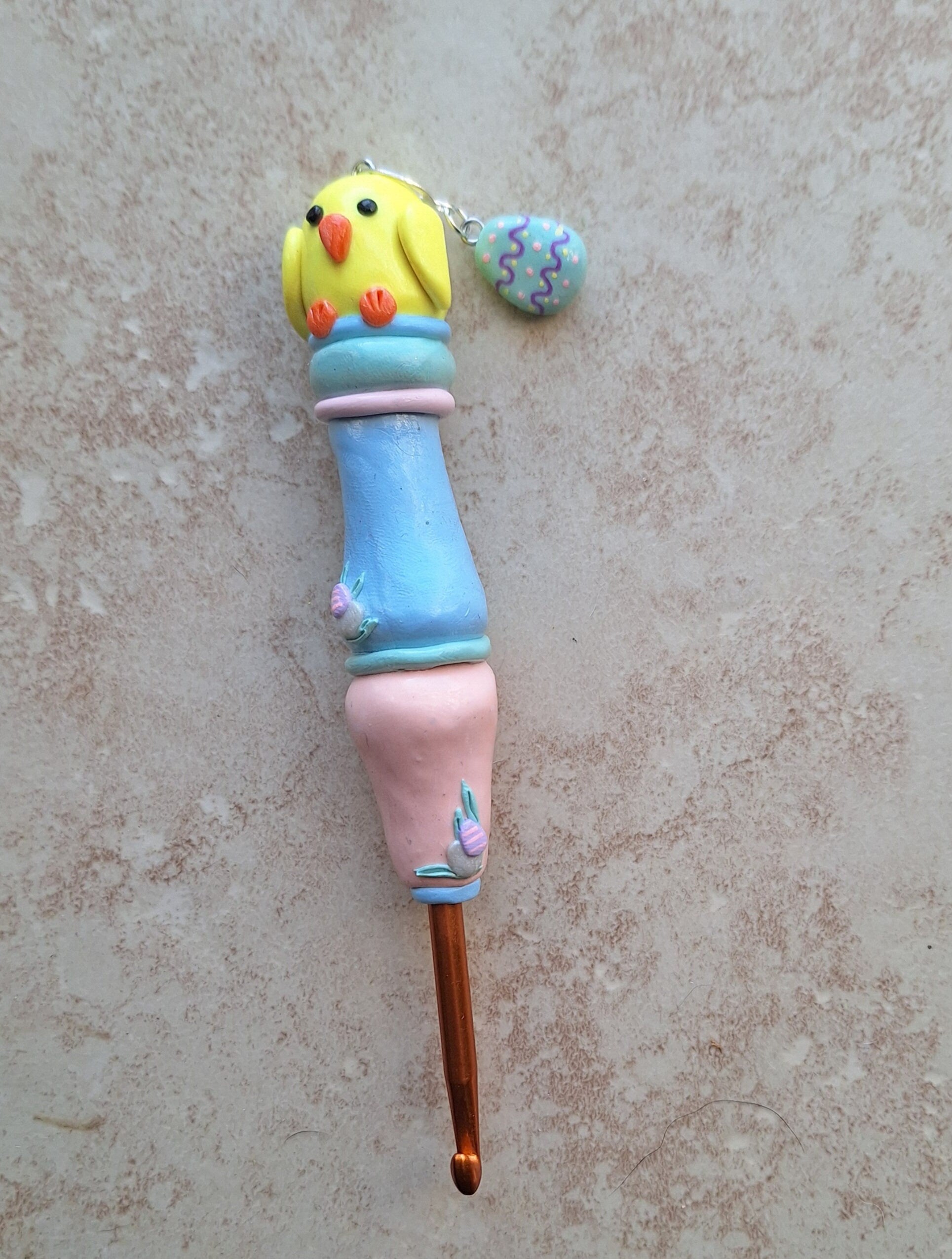 **metal part may vary in color*** hand molded polymer clay crochet hooks.
