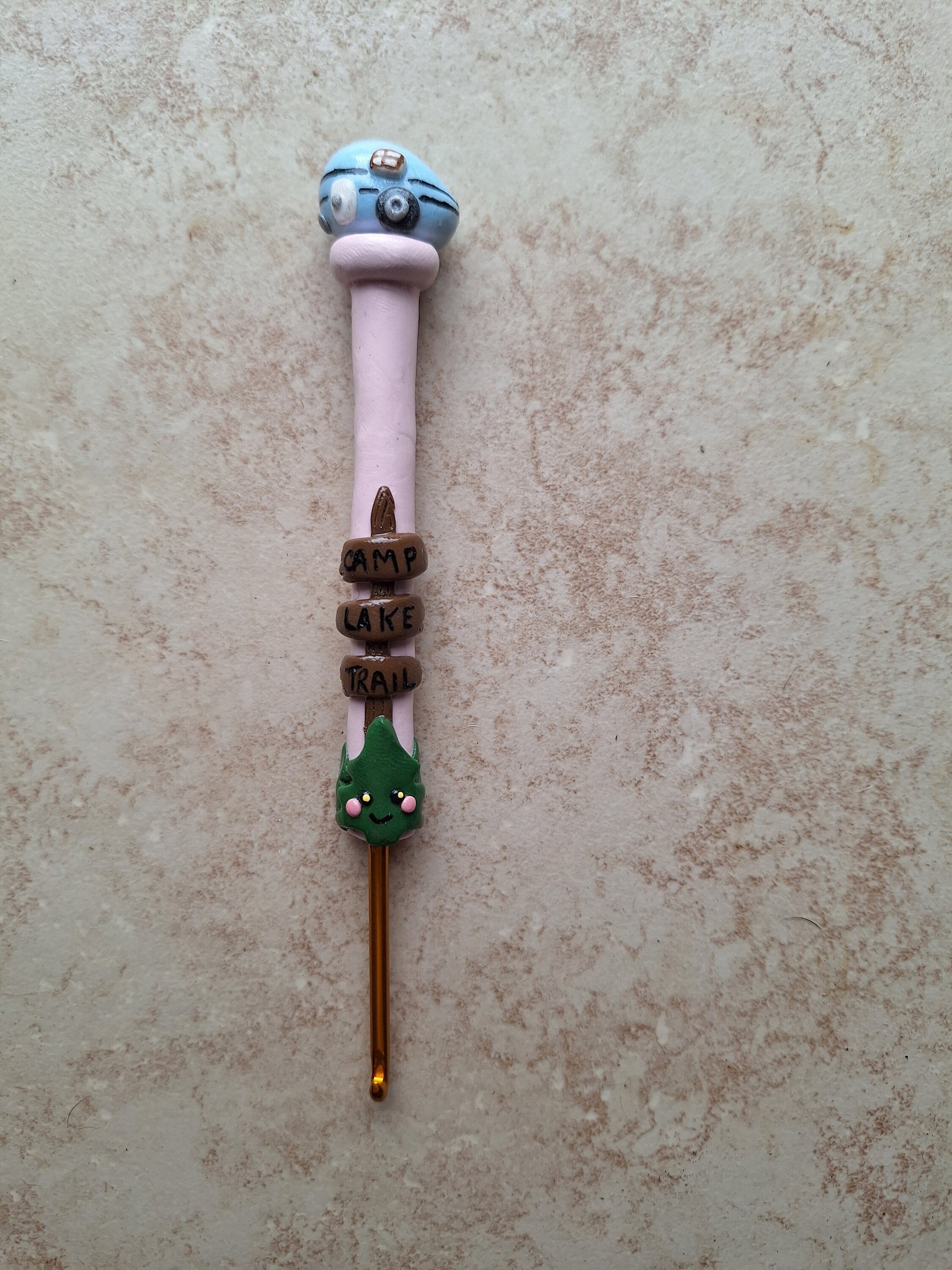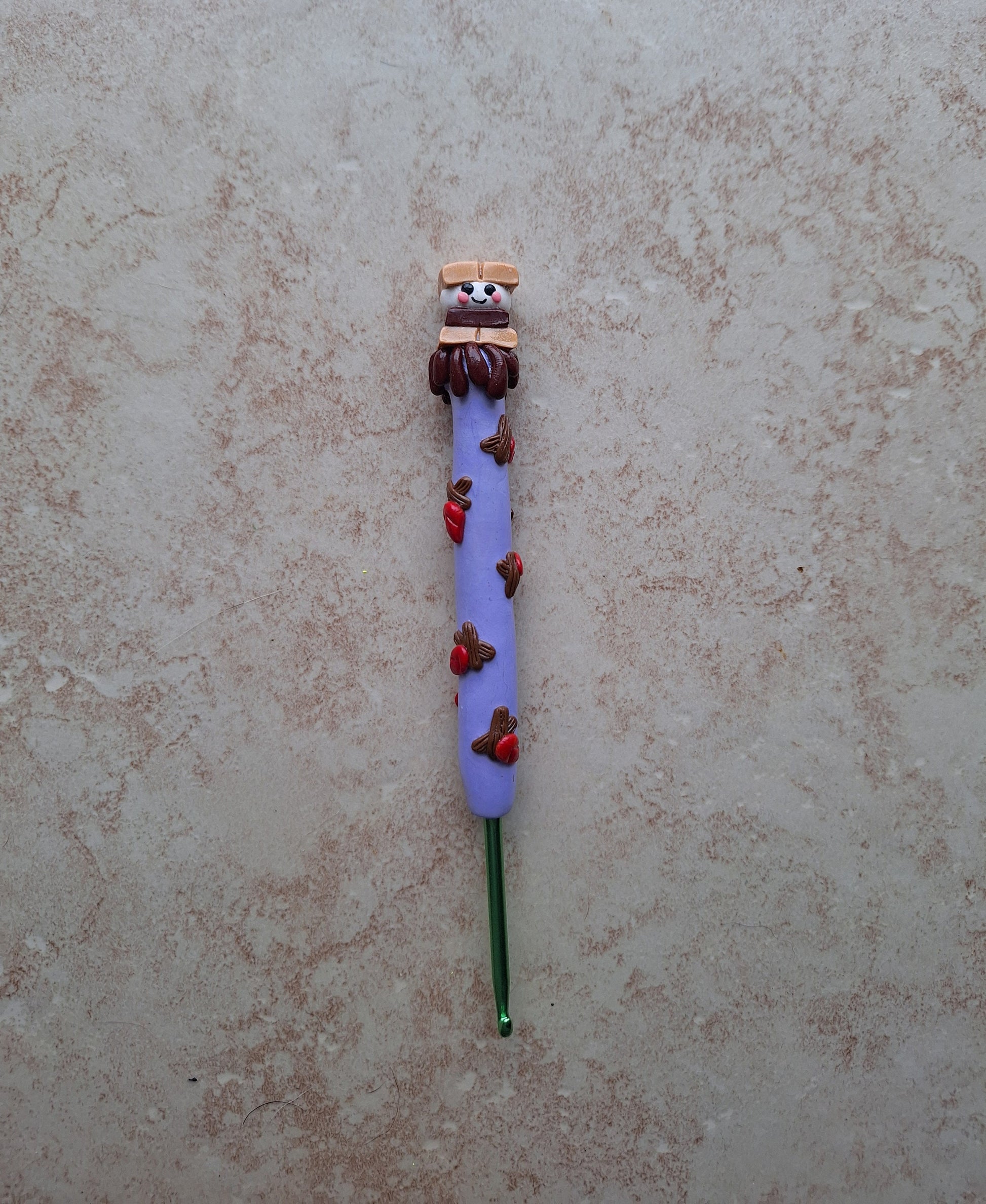**metal part may vary in color*** hand molded polymer clay crochet hooks.