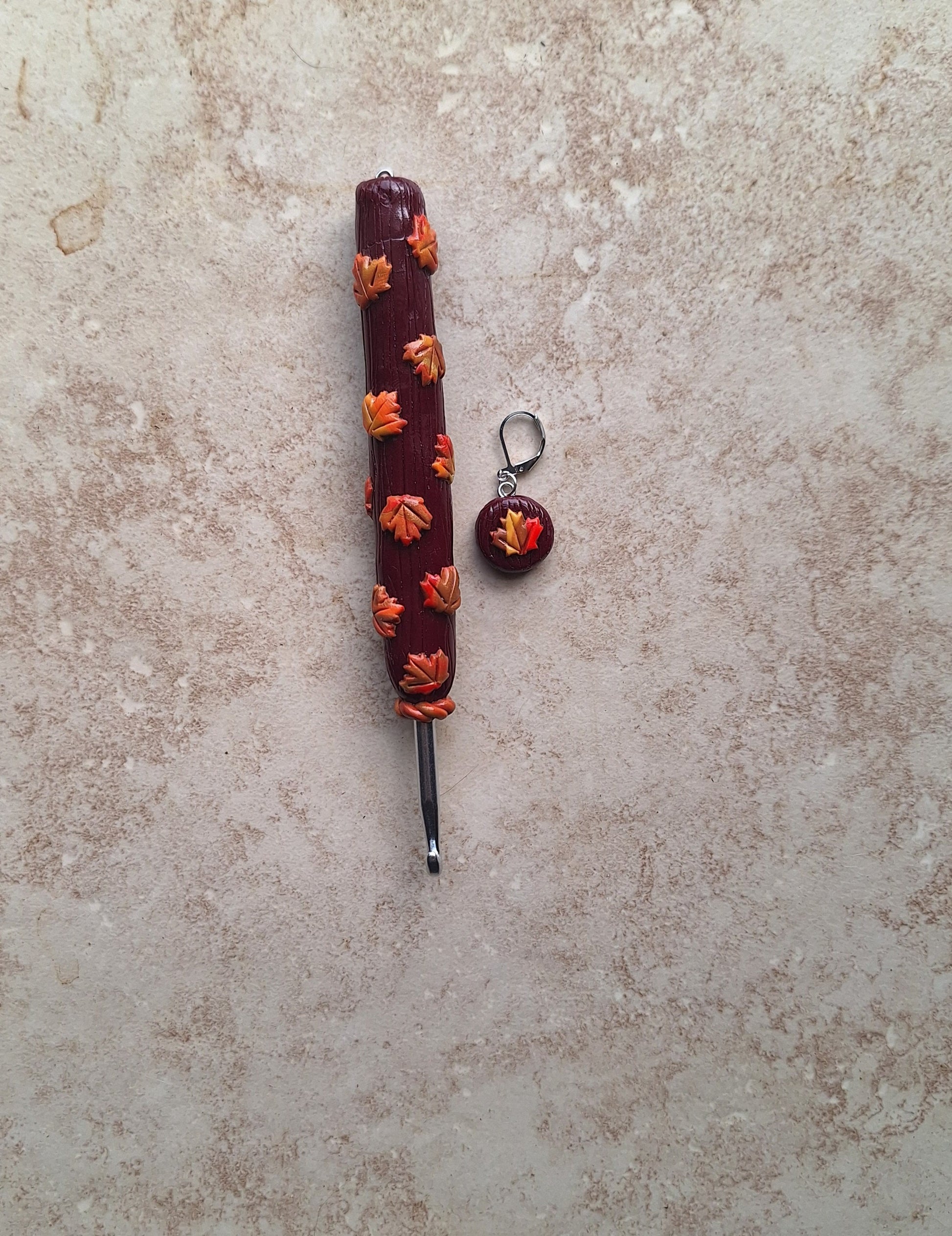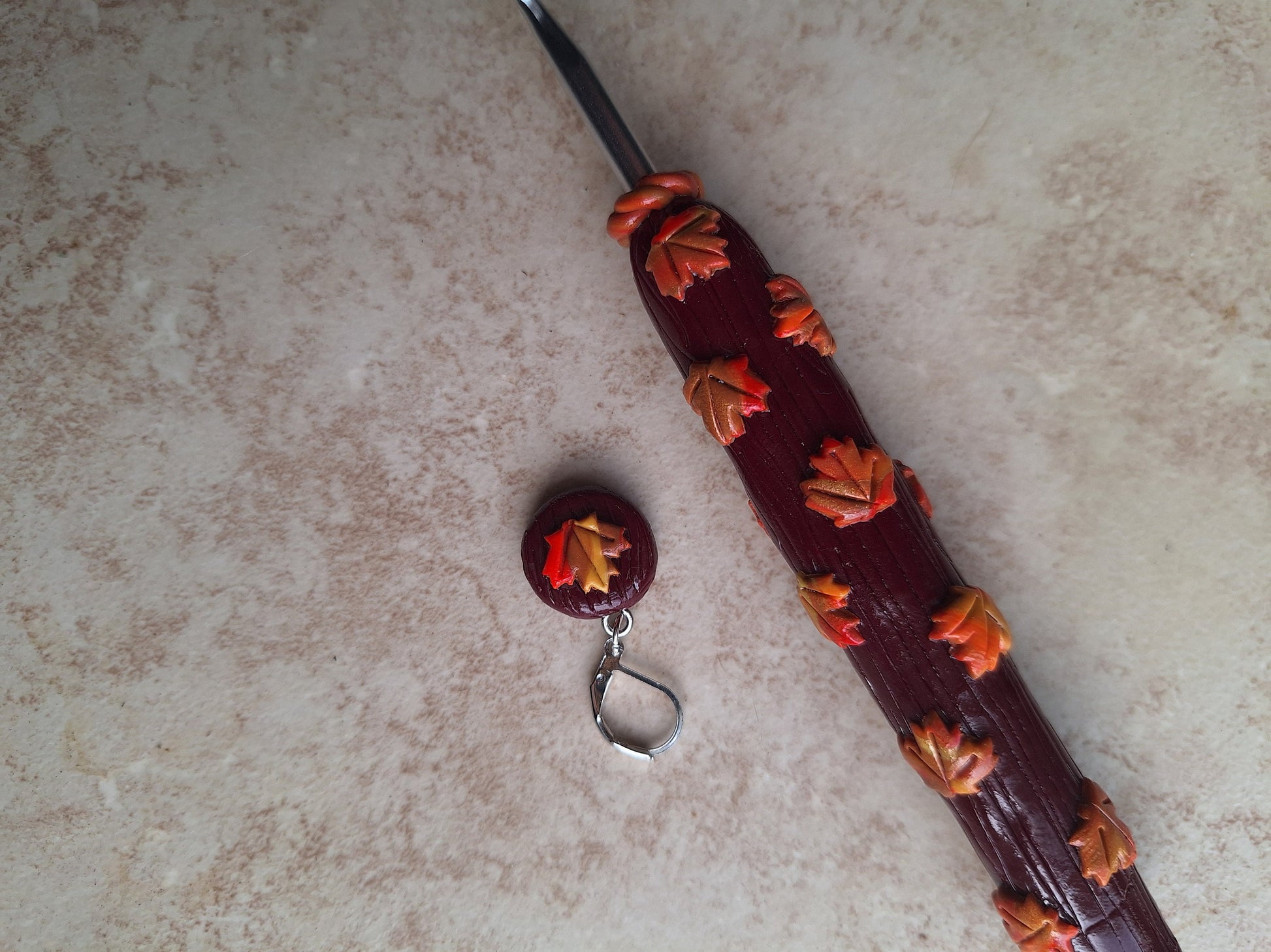 Polymer clay maple leaf fall colorful crochet hook matching stitch marker