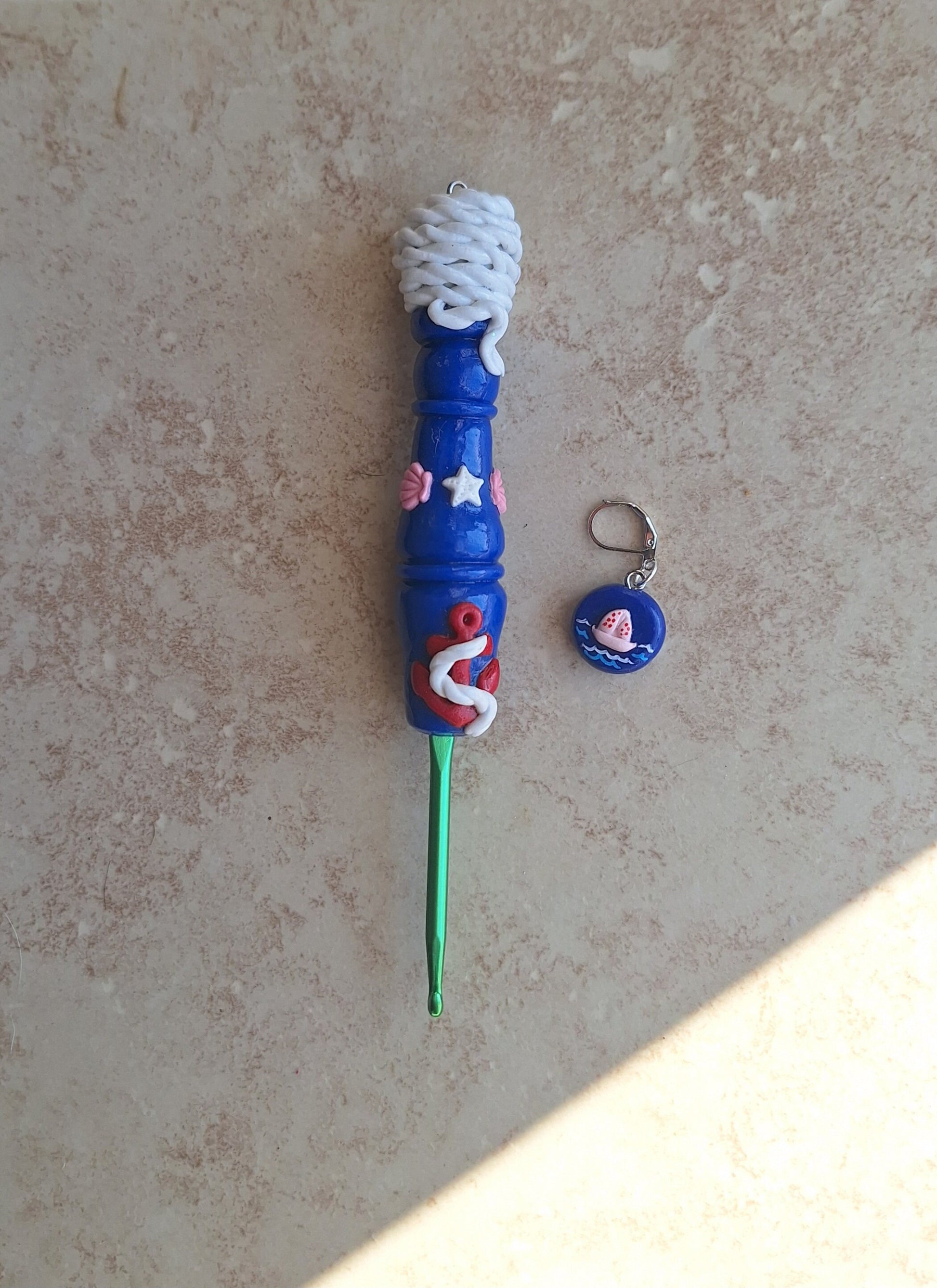**metal part may vary in color*** hand molded polymer clay crochet hooks.