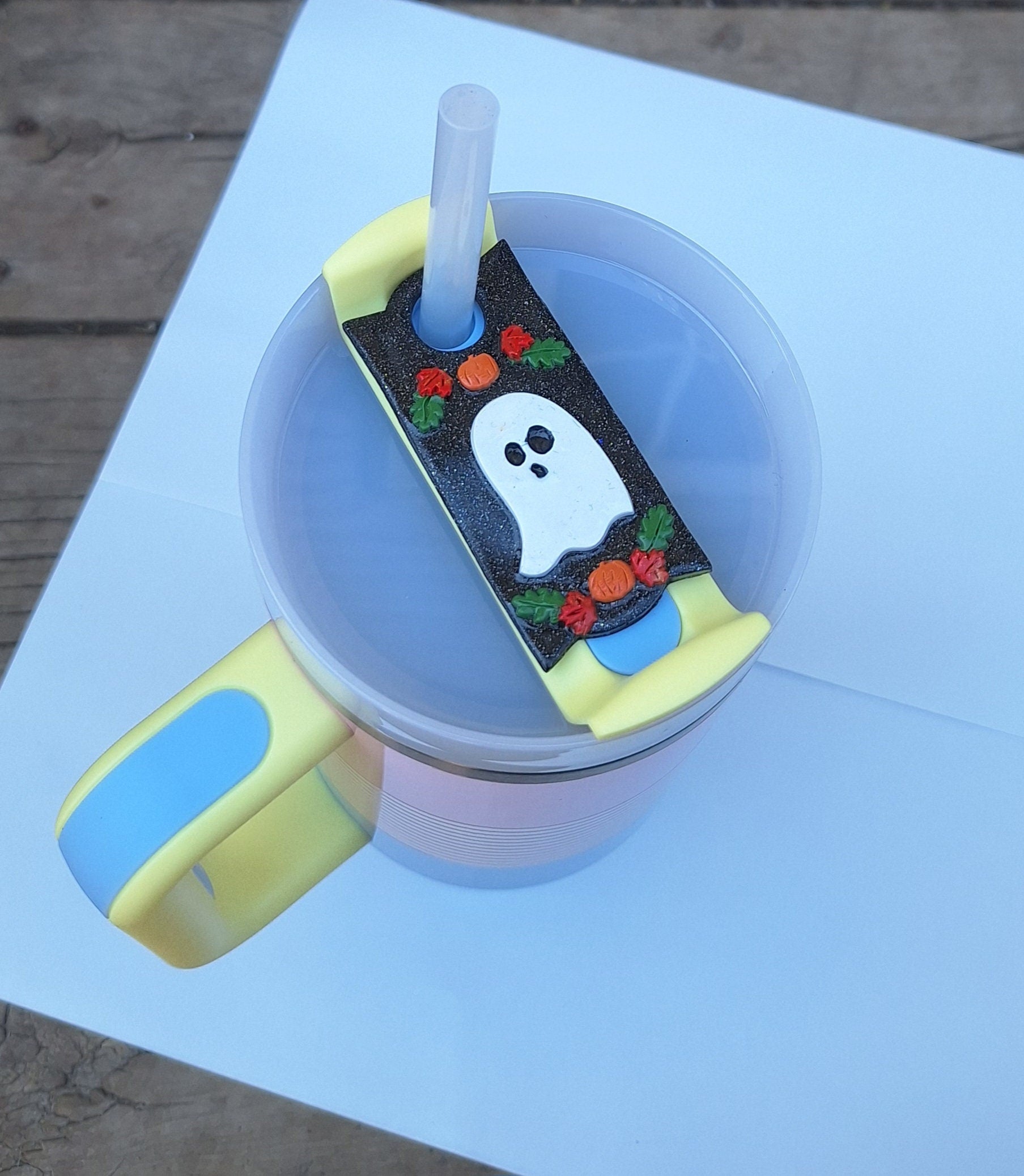 Polymer clay straw tag tumbler topper / clay tumbler accessories / ghost pumpkin tumbler topper straw tag / halloween tumbler accessories