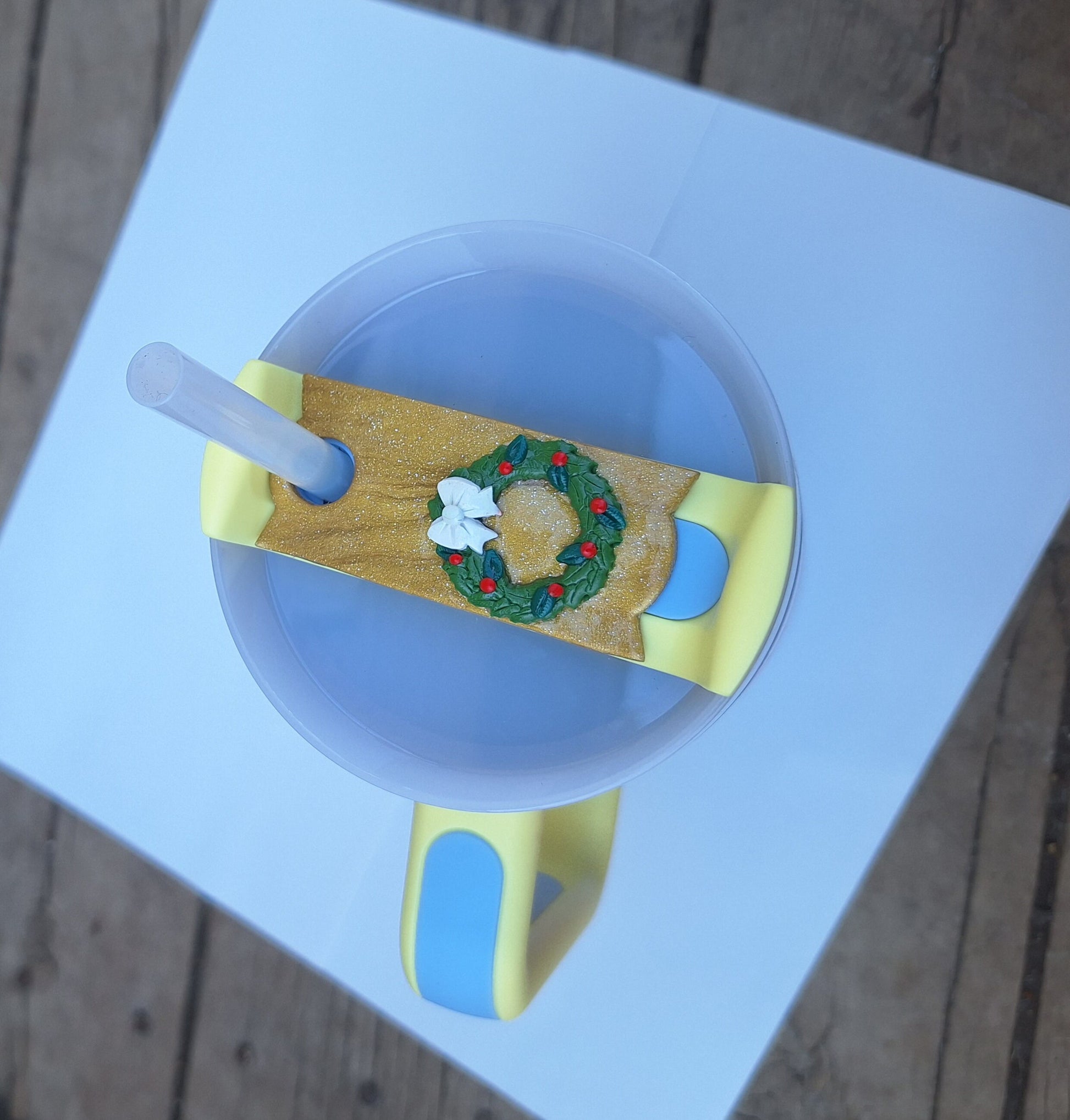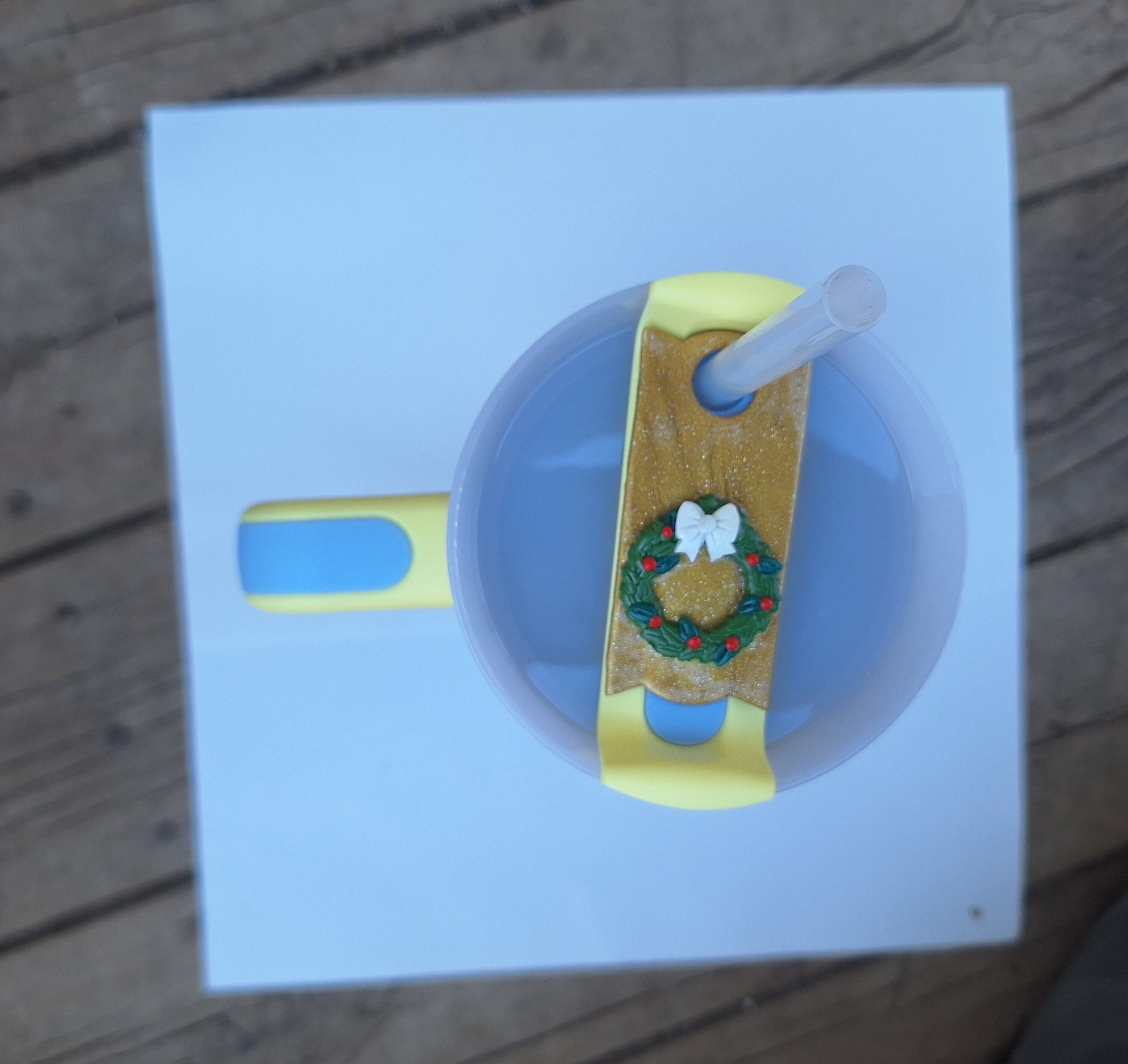 Polymer clay straw tag tumbler topper / clay tumbler accessories / holiday wreath tumbler topper straw tag / Christmas tumbler accessories