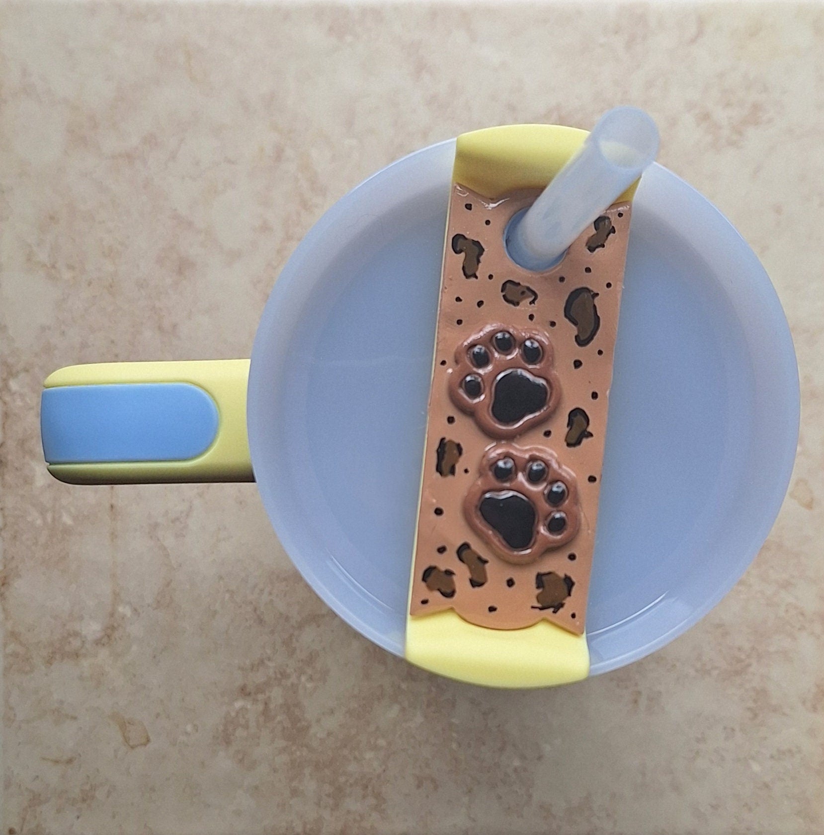 Polymer clay straw tag tumbler topper / clay tumbler accessories / leopard print tumbler topper straw tag / paw print tumbler accessories