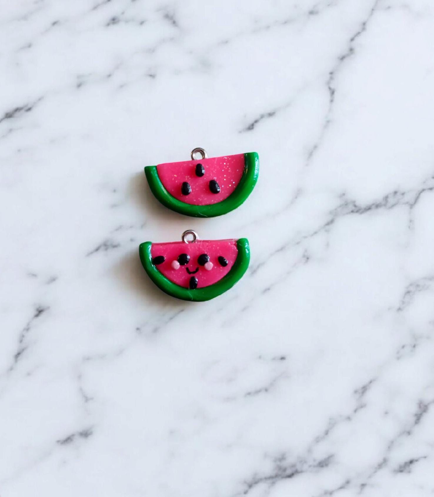 Polymer clay watermelon charms / cute kawaii food charms / clay watermelon fruit jewelry charm stitch marker progress keeper notions