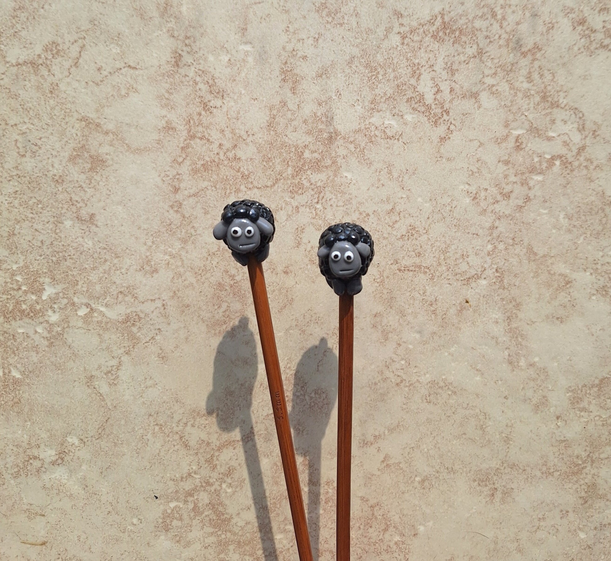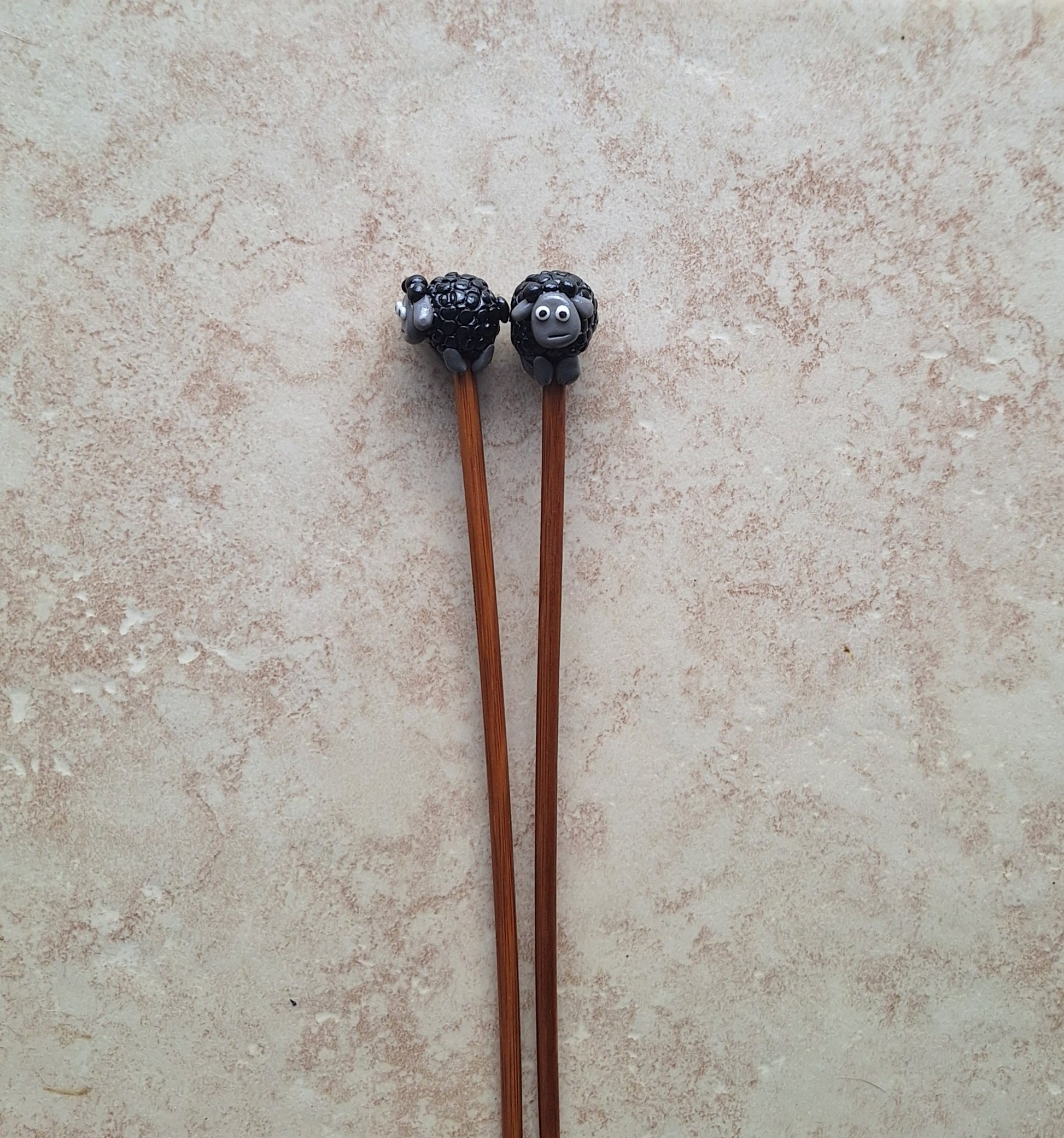 Polymer clay Set of 2 black sheep knitting needles knitting accessory