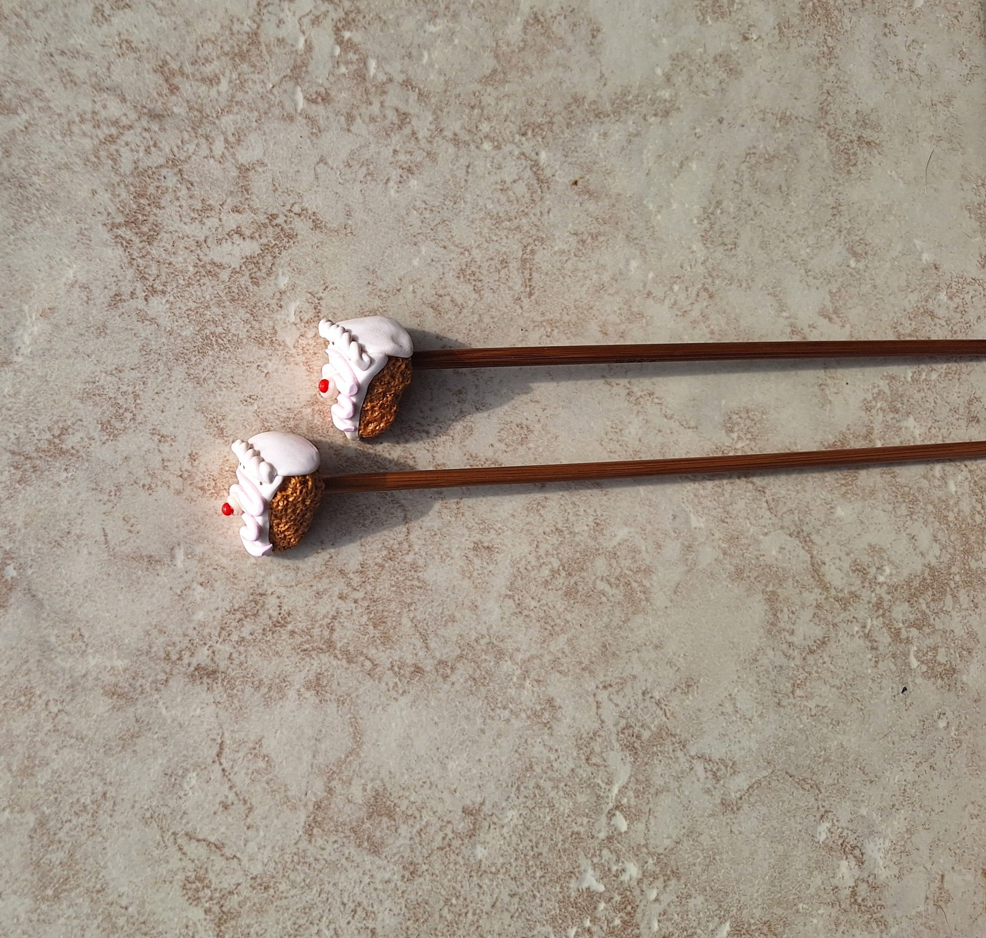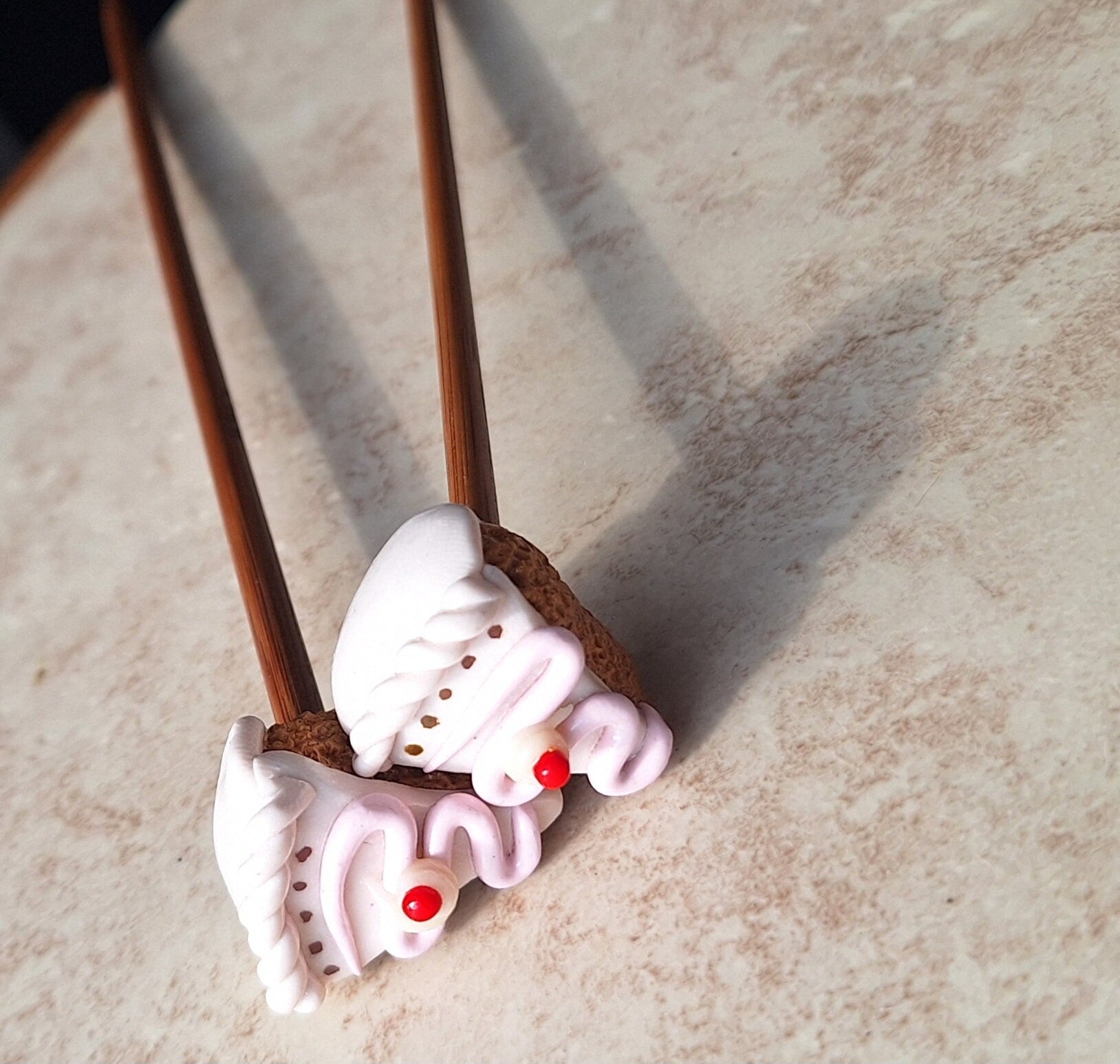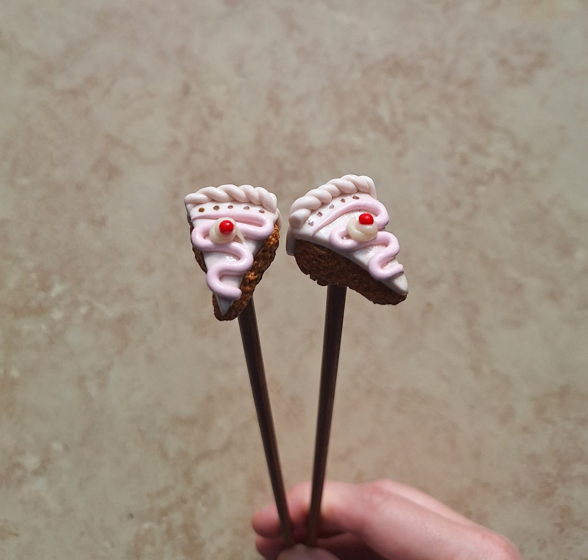 Set of 2 cake slices knitting needles / polymer clay knitting needles / decorative piece of cake knitting needles knitting accessory crochet
