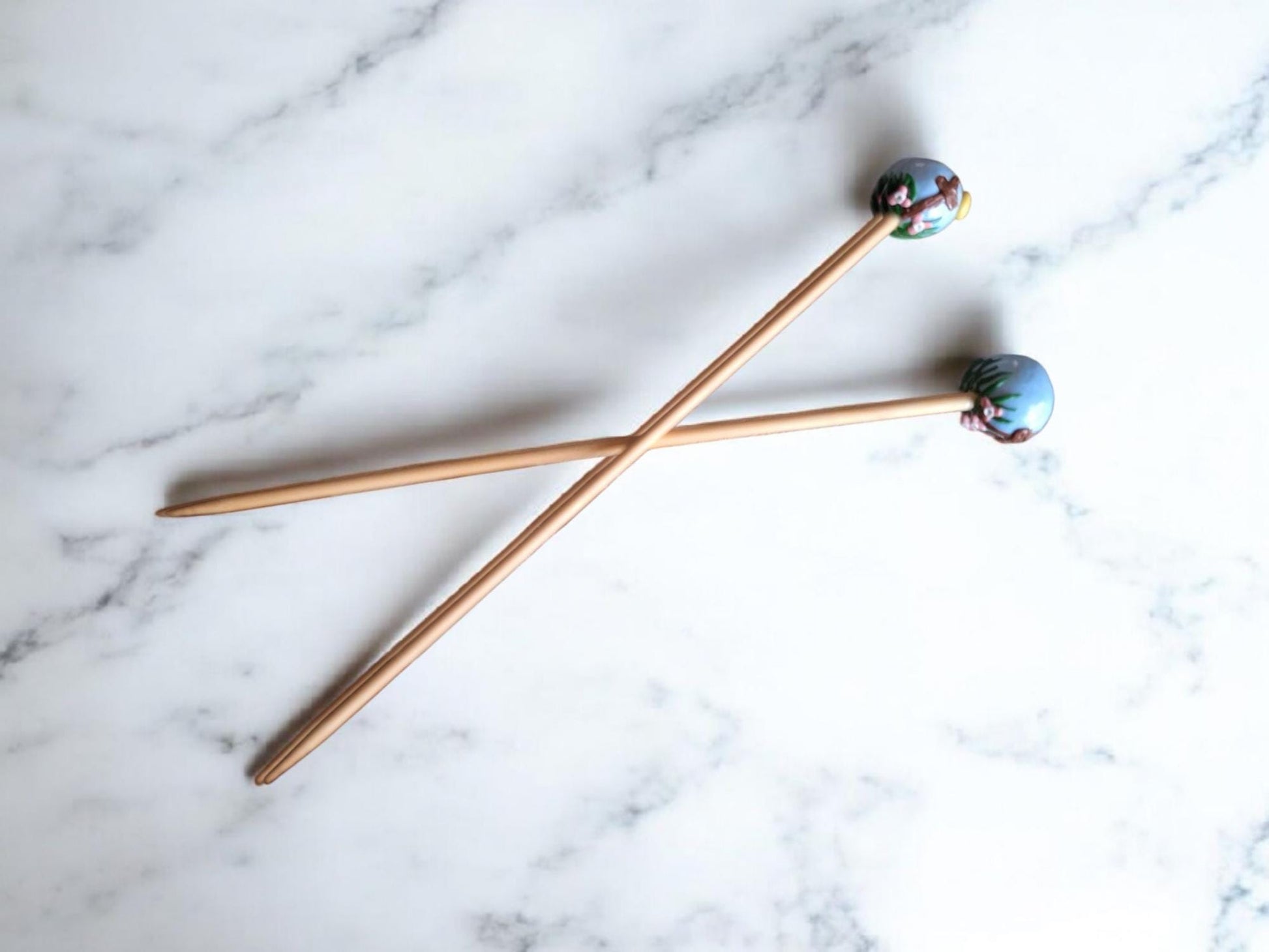 Set of 2 cross knitting needles / polymer clay knitting needles / decorative spring flower knitting needles accessory