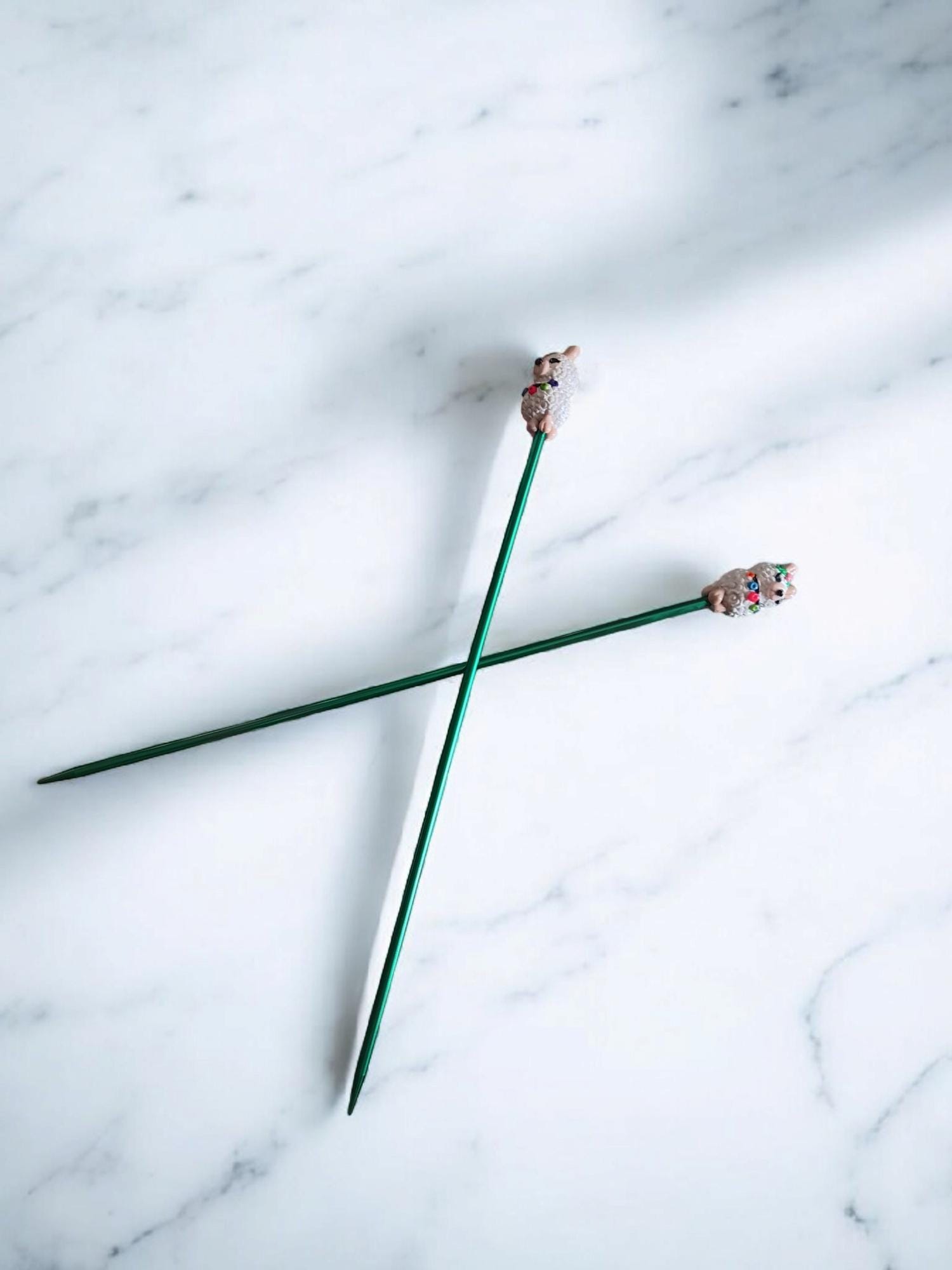 Set of 2 cute llama knitting needles / polymer clay knitting needles / decorative llama alpaca knitting needles accessory