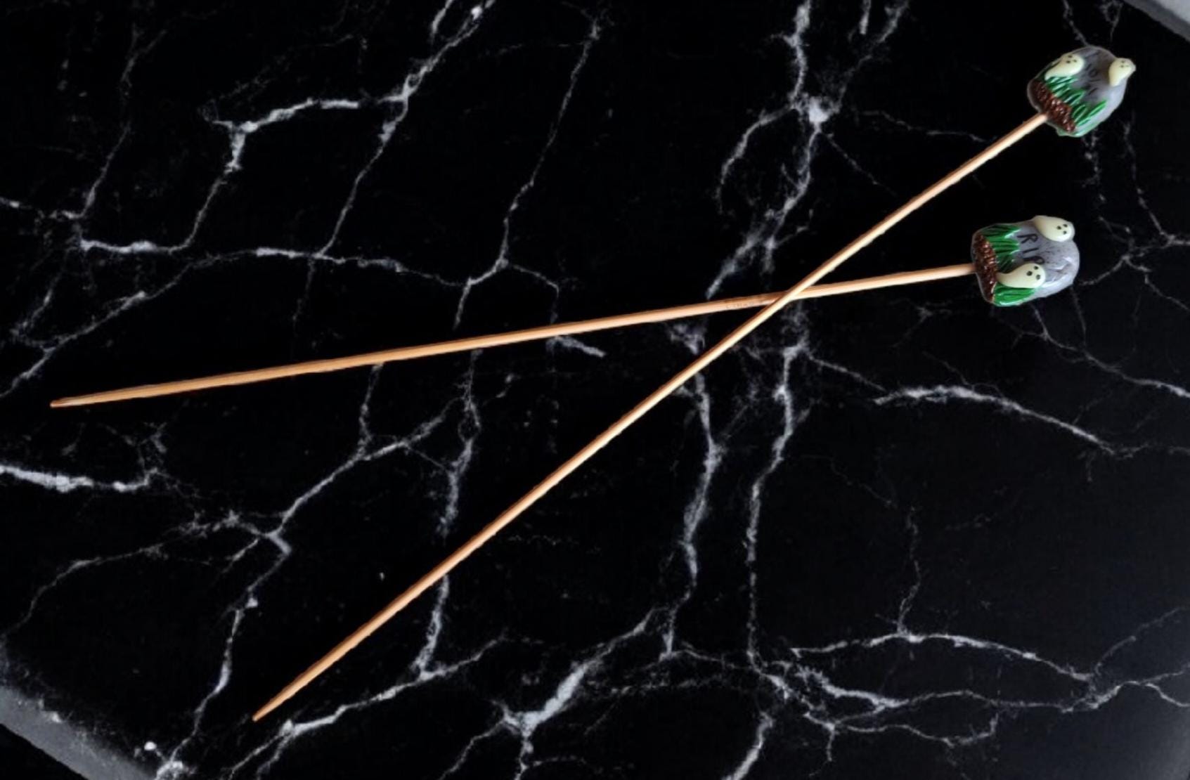 Set of 2 RIP glow ghost knitting needles / polymer clay knitting needles / decorative halloween knitting needles accessory