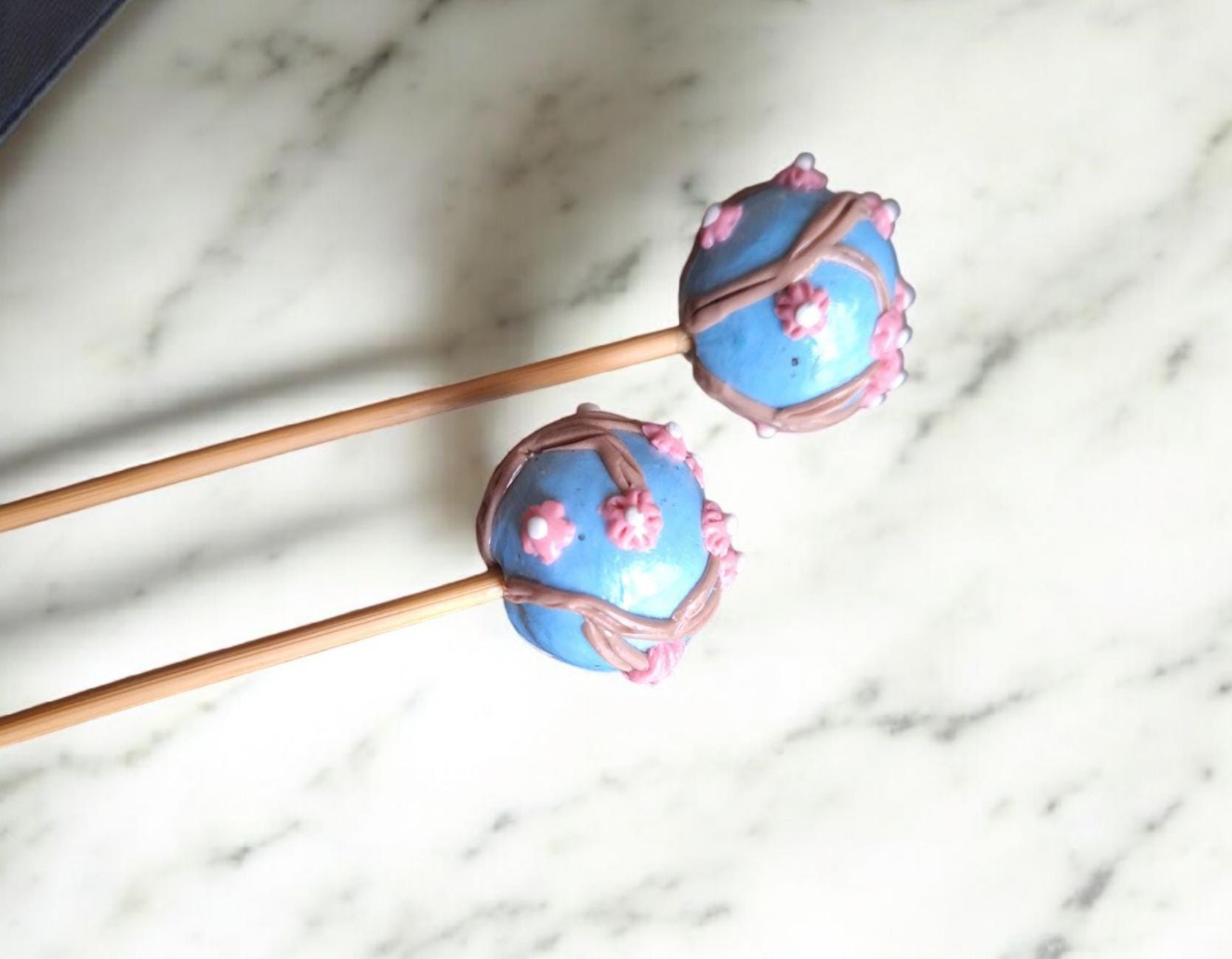 Set of 2 sakura cherry blossom knitting needles / polymer clay knitting needles / decorative blue floral needles knitting accessory