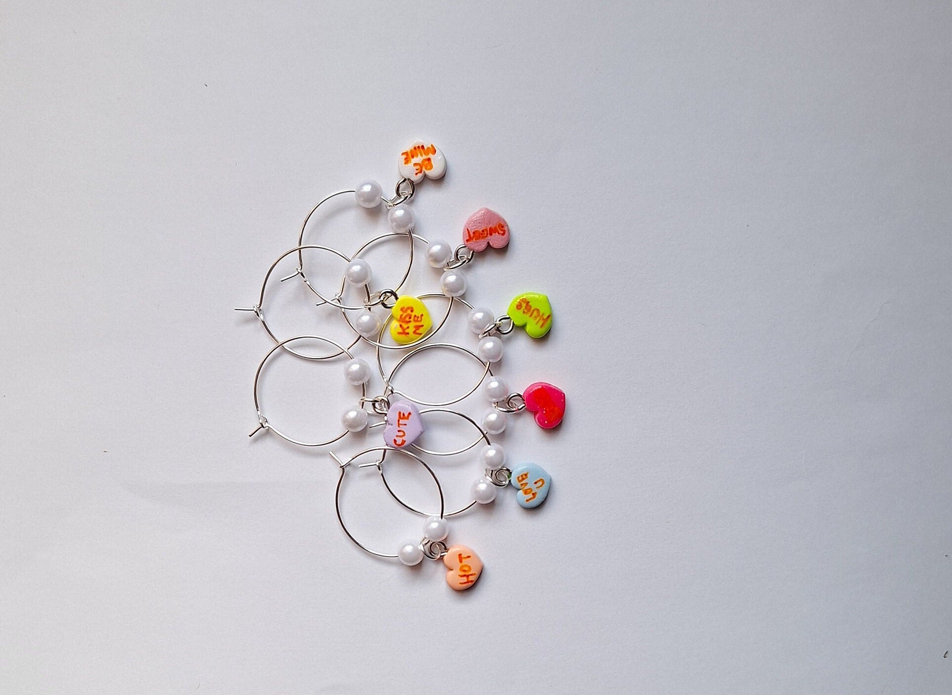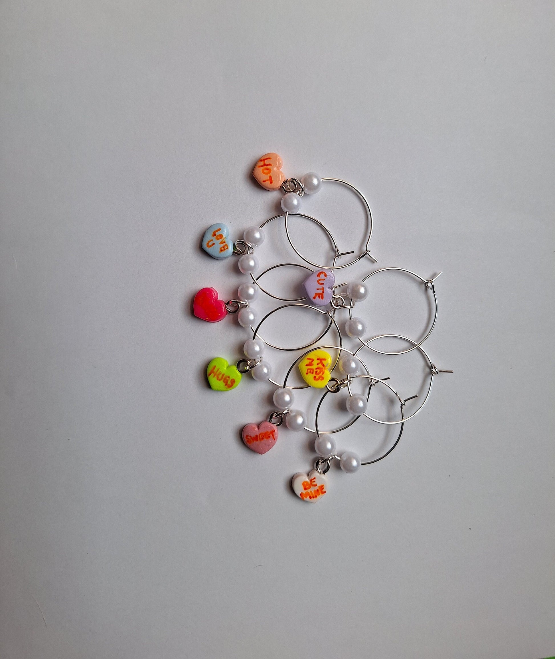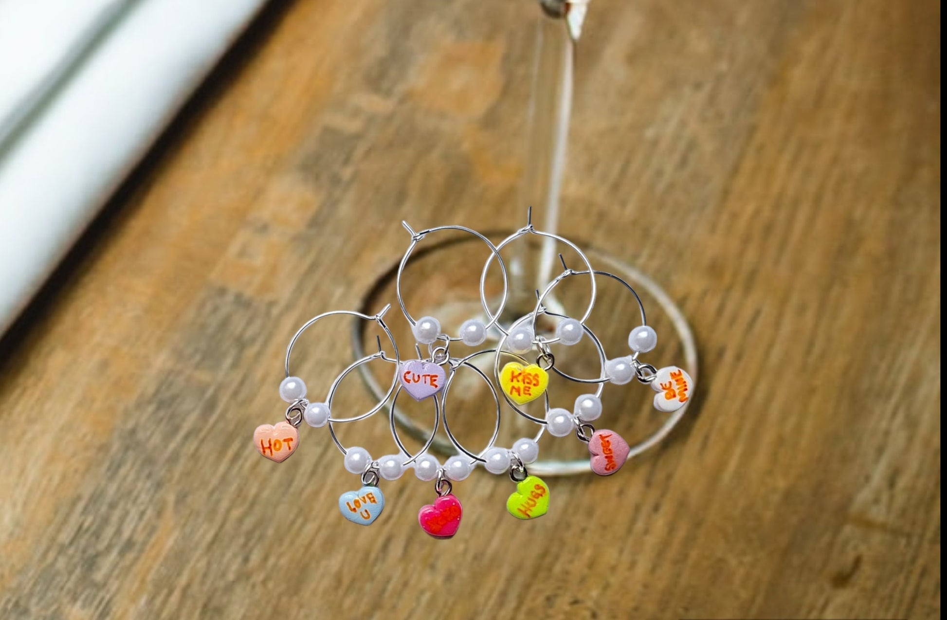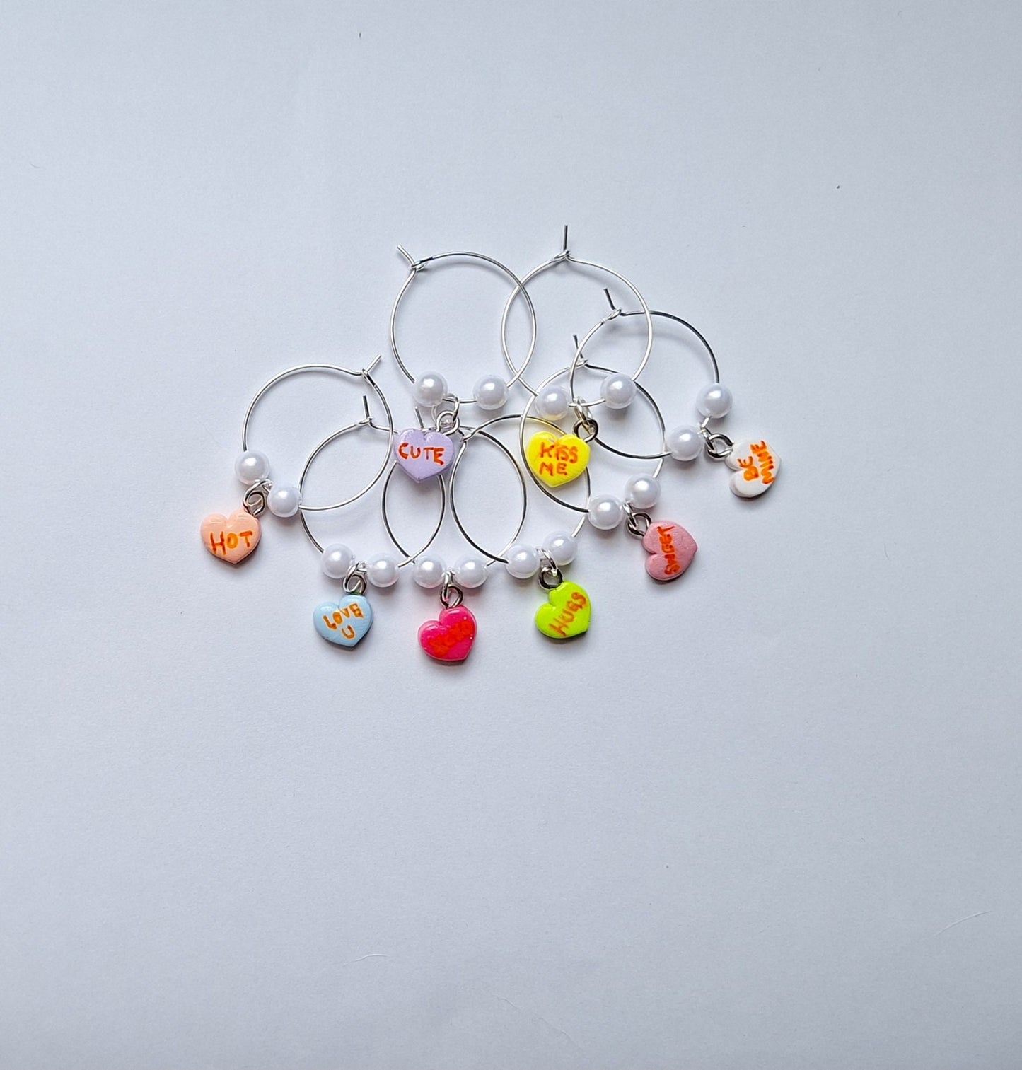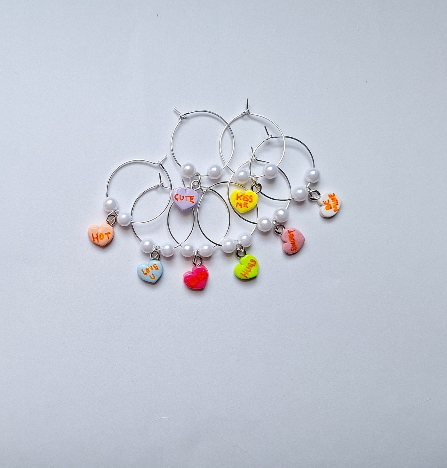 Set of 8 valentine wine charms / holiday wine charms / winter spring wine charms / 8 set polymer clay valentine heart celebrate wine charms