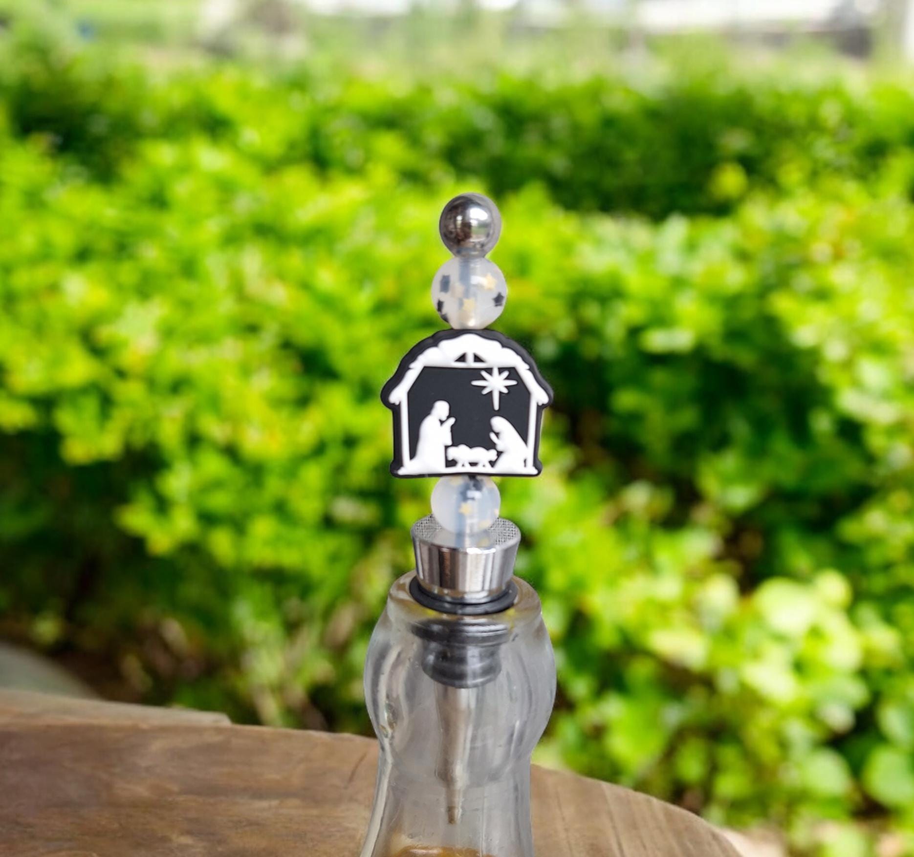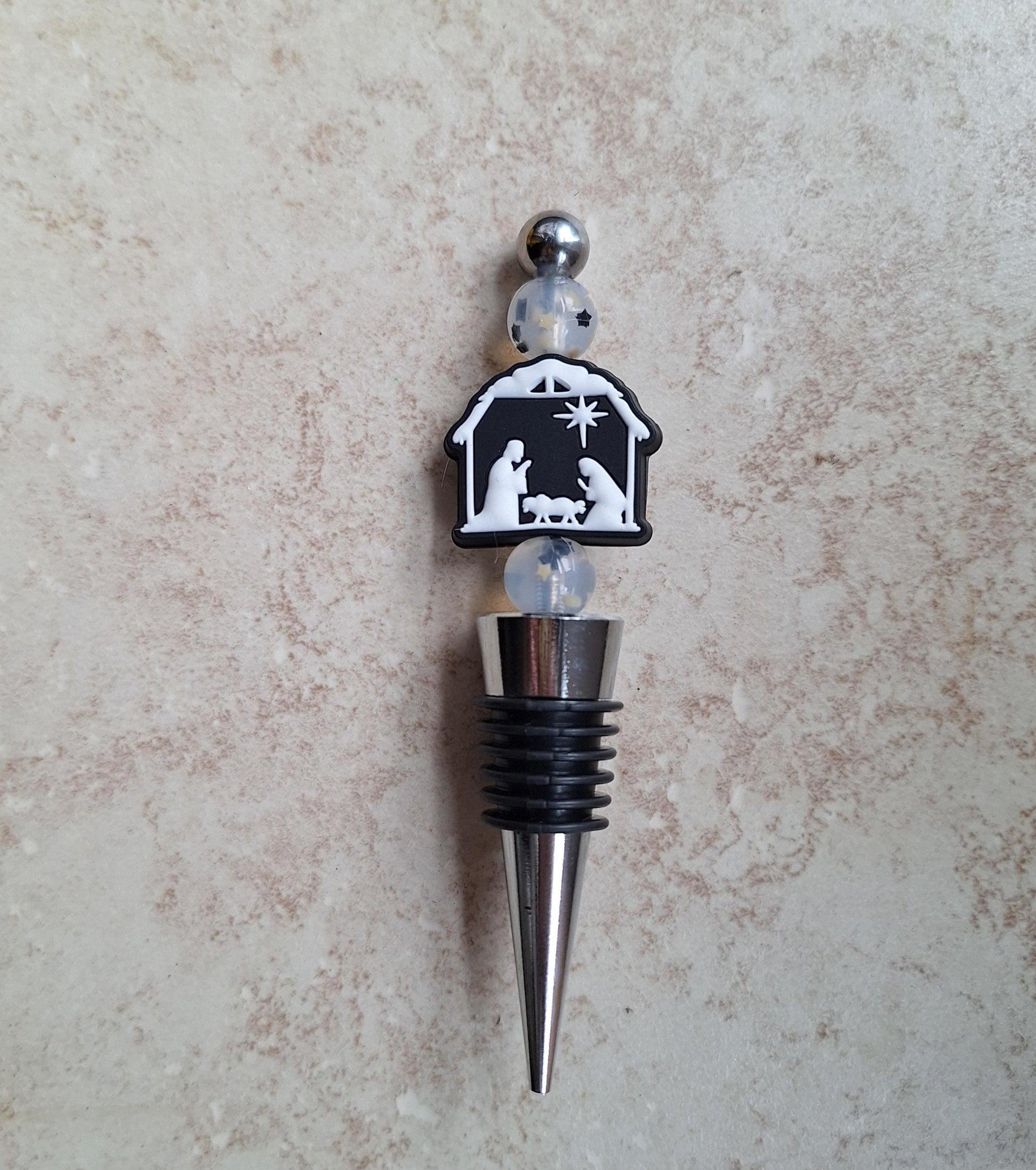 Silicone beaded Christmas nativity wine stopper / holiday beaded silicone wine stopper top / christian religious wine accessories