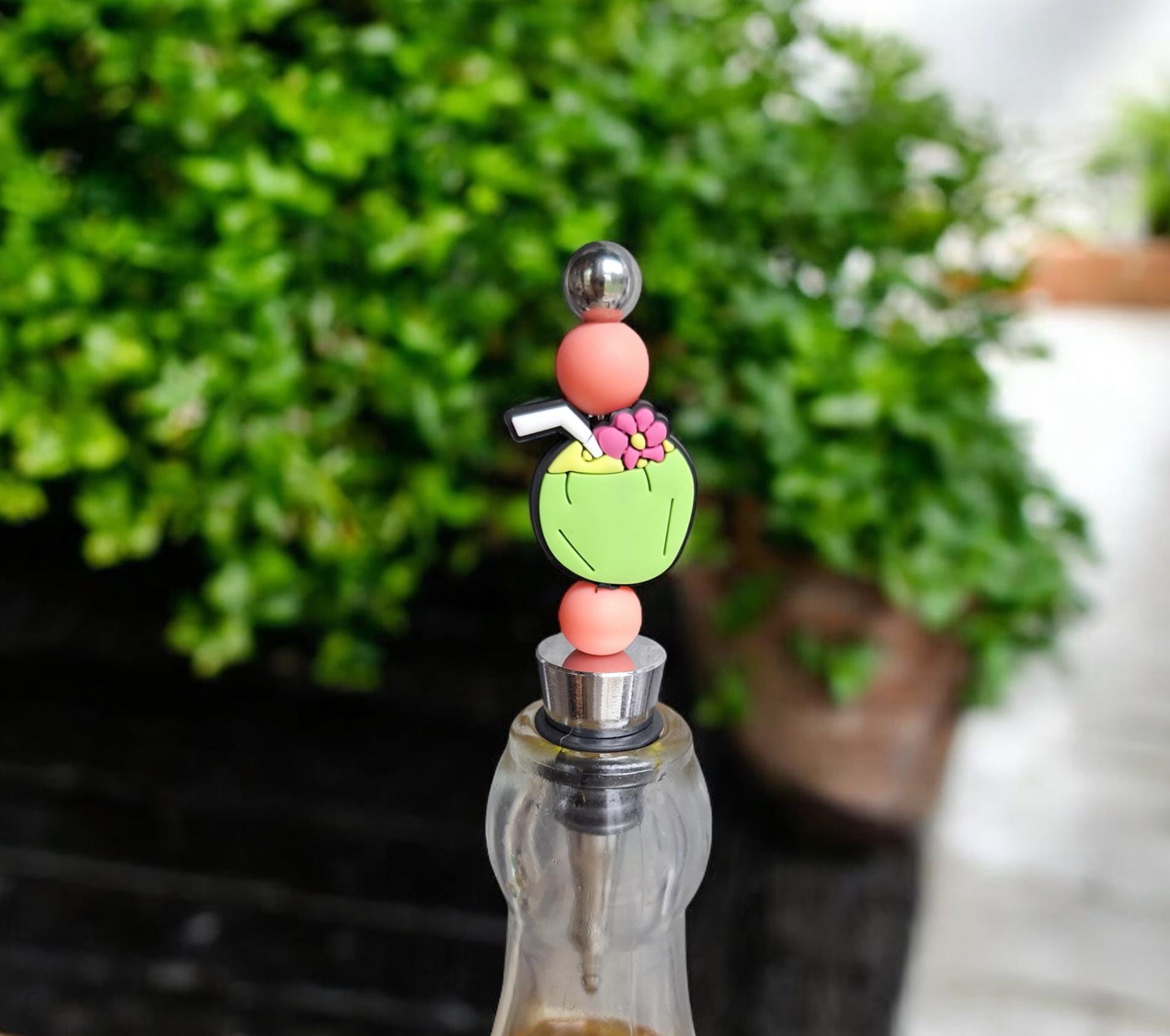Silicone beaded floral coconut wine stopper / spring summer flower beaded silicone wine stopper top / pineapple tropical wine accessories