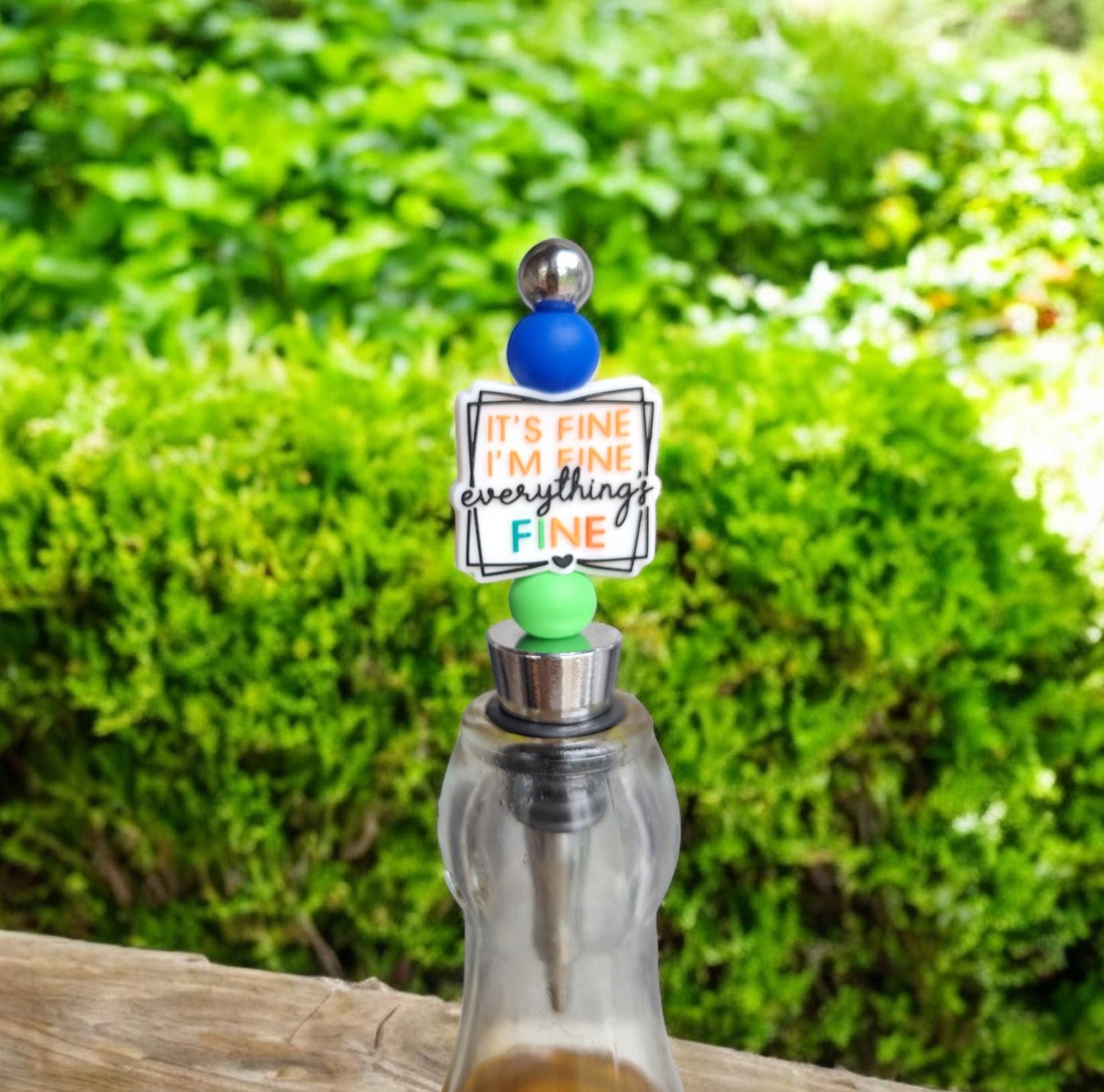 Silicone beaded it's fine I'm fine everything's fine wine stopper / anxiety beaded silicone wine stopper top wine accessories