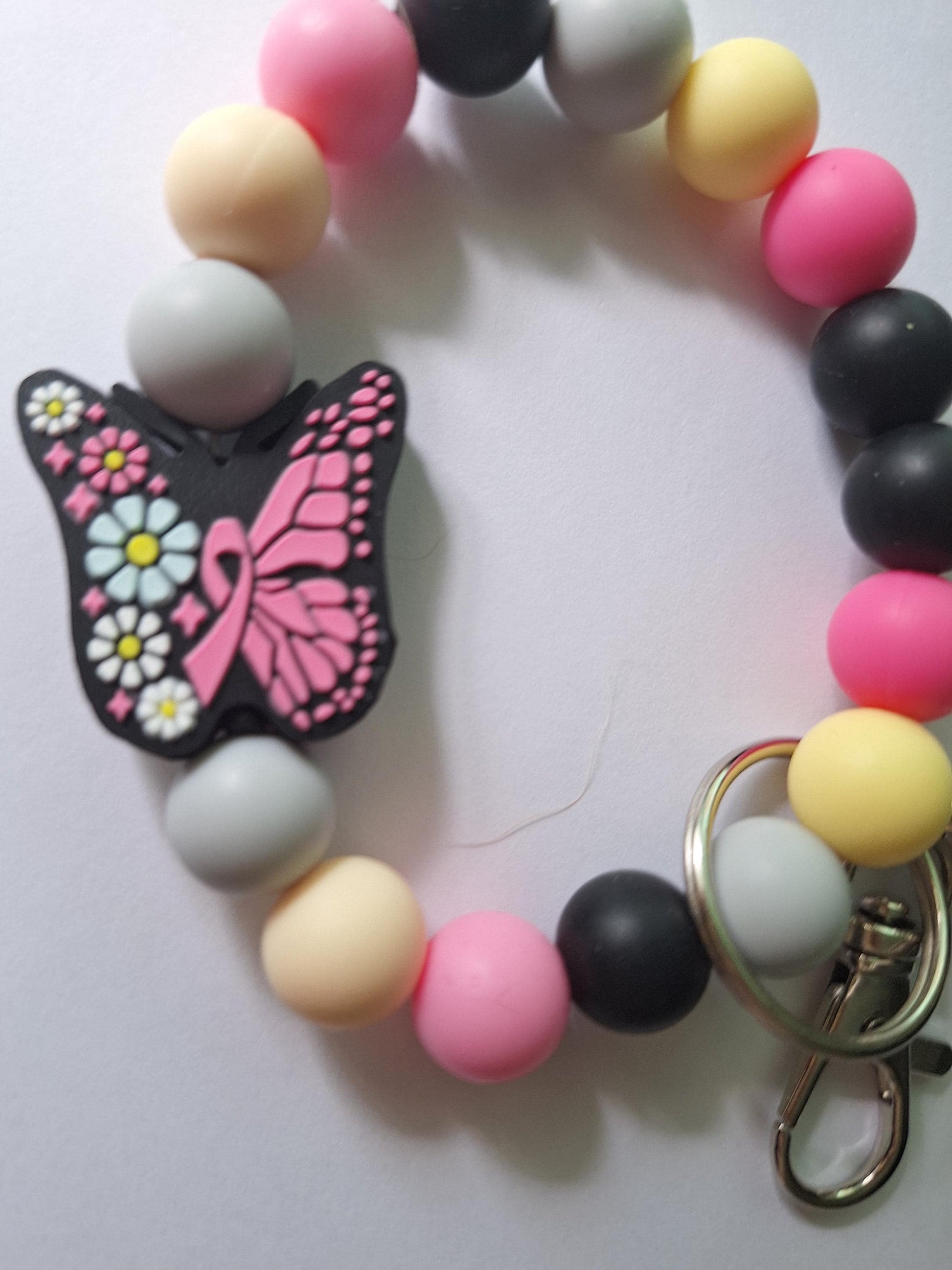 Silicone beaded wristlet keychain / breast cancer awareness ribbon silicone beaded wristlet keychain / butterfly bag accessories key chain