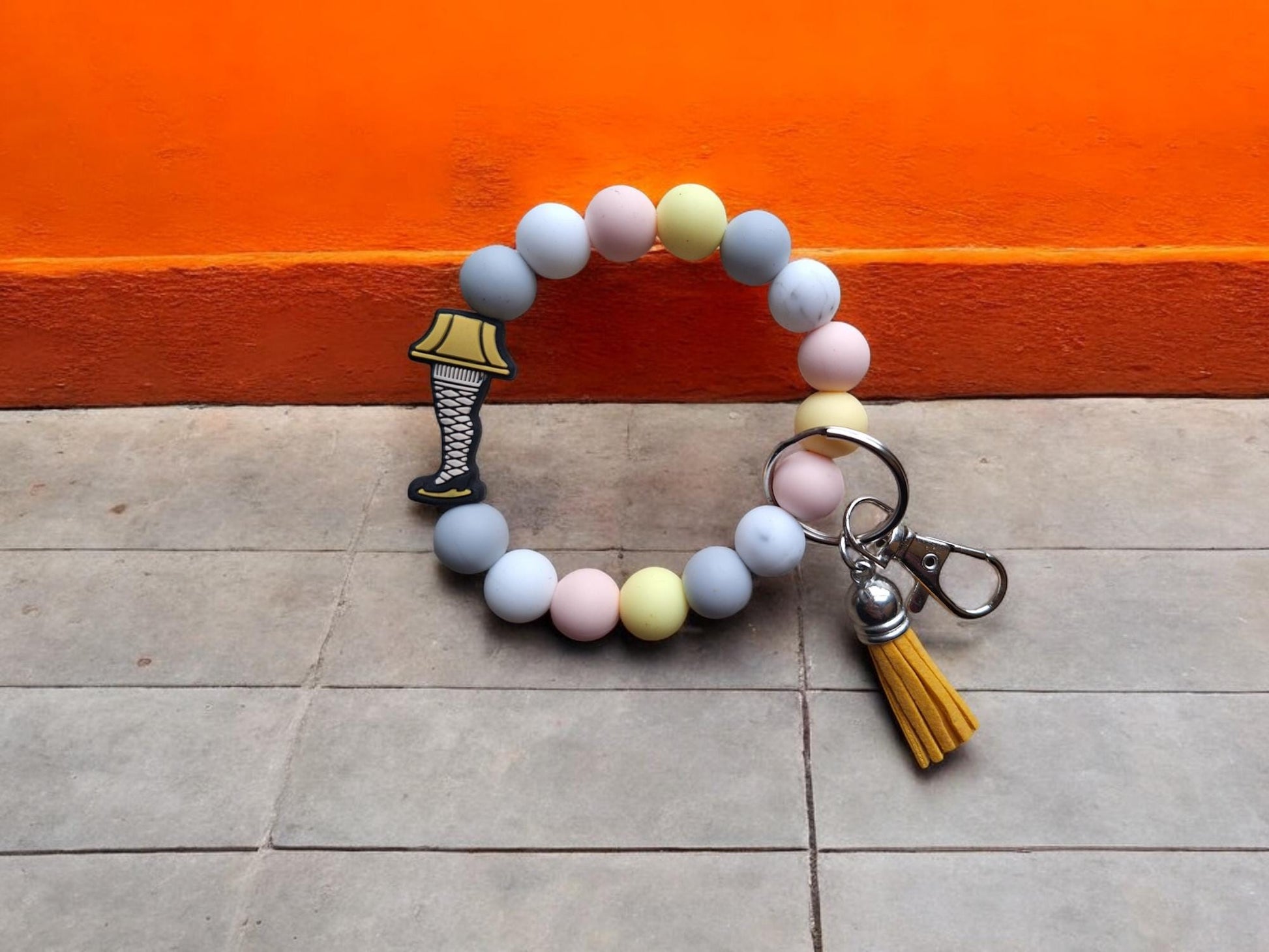 Silicone beaded wristlet keychain christmas beaded wristlet tree keychain / yellow leg lamp bag accessory key chain gift