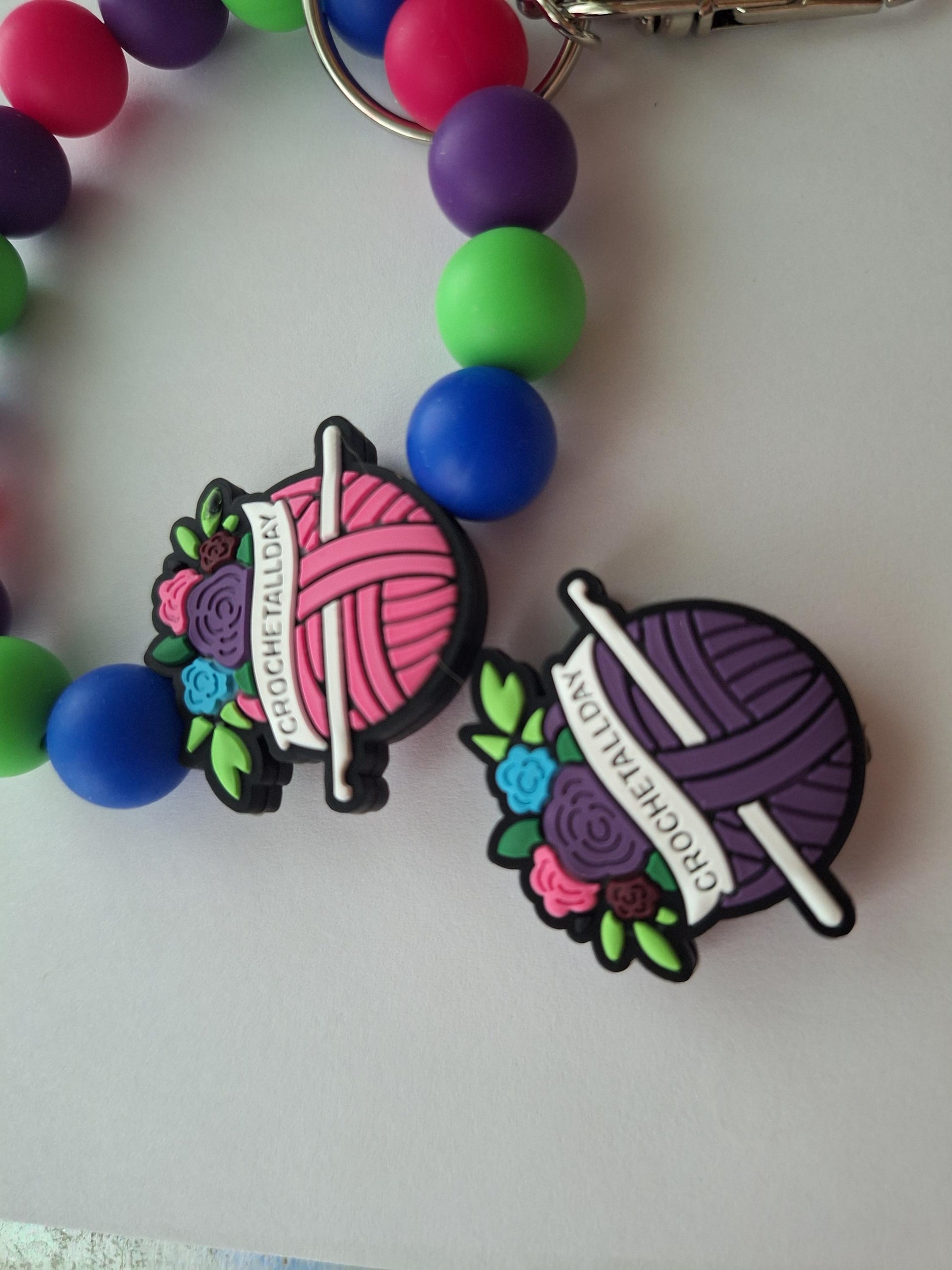 Silicone beaded wristlet keychain / crochet all day silicone wristlet keychain / pink purple yarn crochet bag accessories key chain