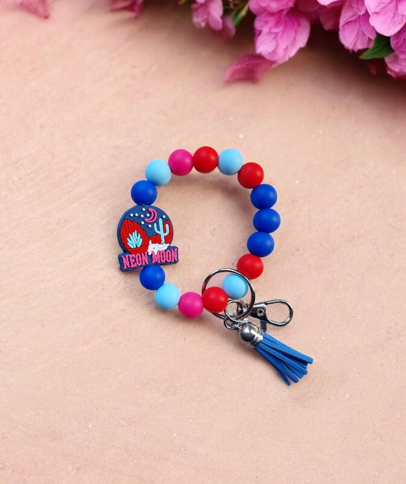 Silicone beaded wristlet keychain desert cactus beaded wristlet keychain / neon moon bag accessories key chain