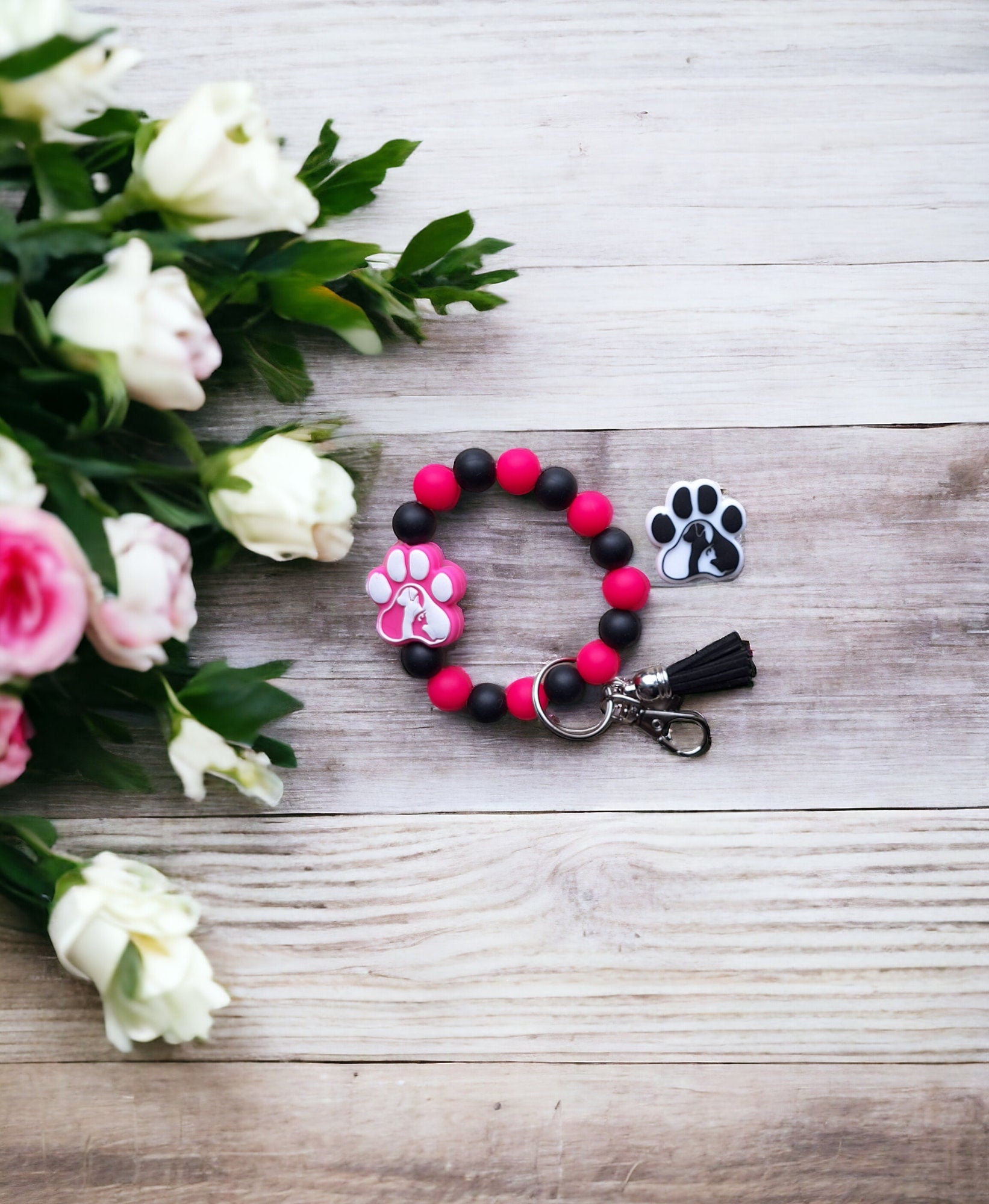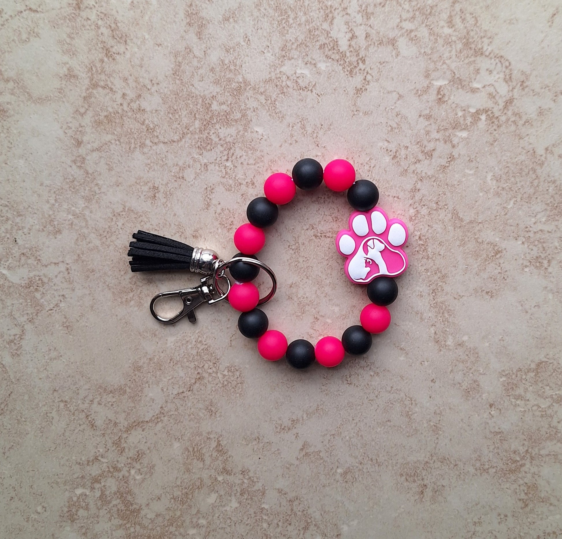 Silicone beaded wristlet keychain / dog mom silicone beaded wristlet pawprint keychain / animal silhouette bag accessories key chain gift