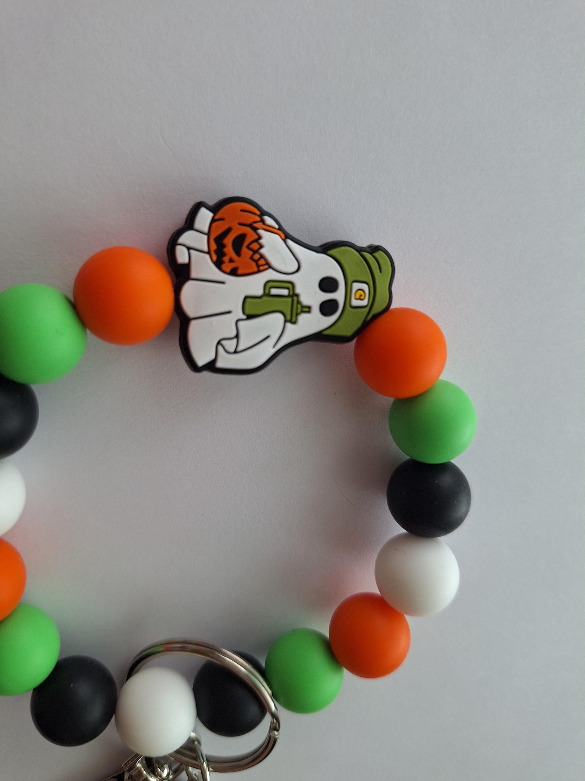 Silicone beaded wristlet keychain / fall halloween beaded wristlet ghost keychain / ghost with cup and beanie bag accessories key chain gift