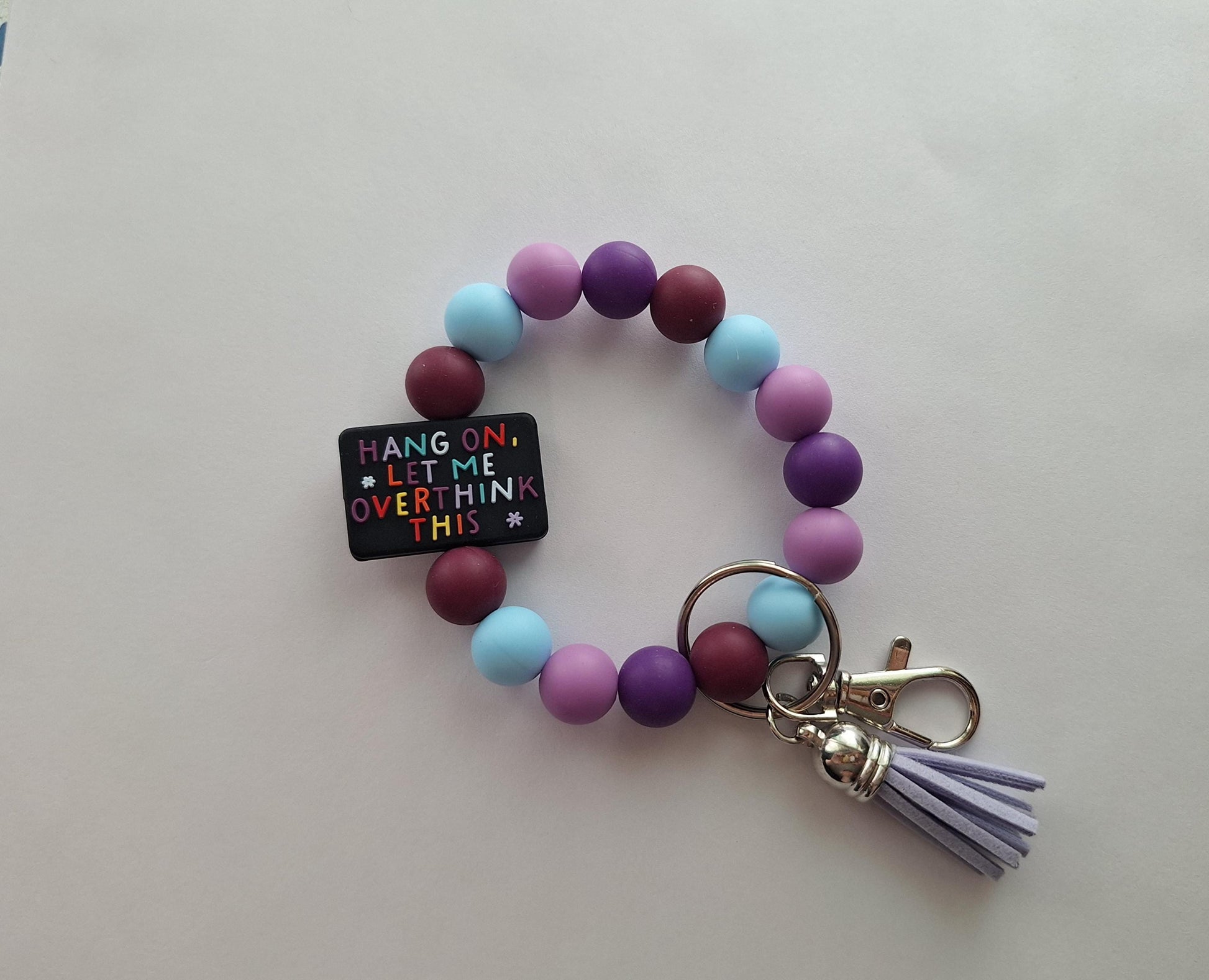 Silicone beaded wristlet keychain hang on let me overthink this / silicone beaded wristlet keychain / bag accessories key chain gift
