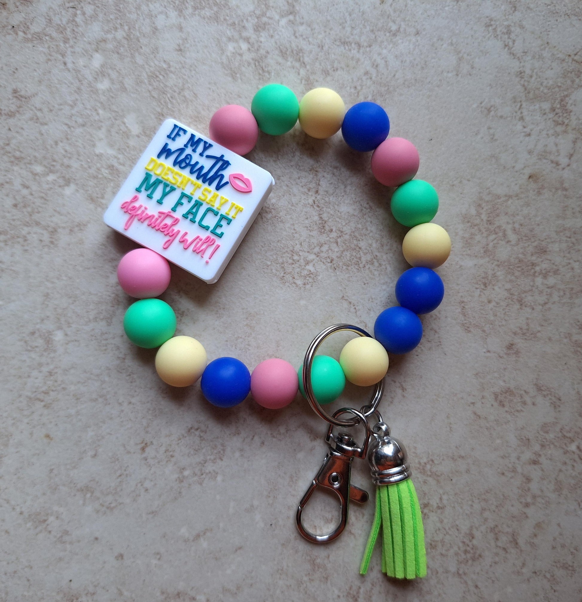 Silicone beaded wristlet keychain if my mouth doesn't say it my face will silicone beaded wristlet keychain / bag accessories key chain gift