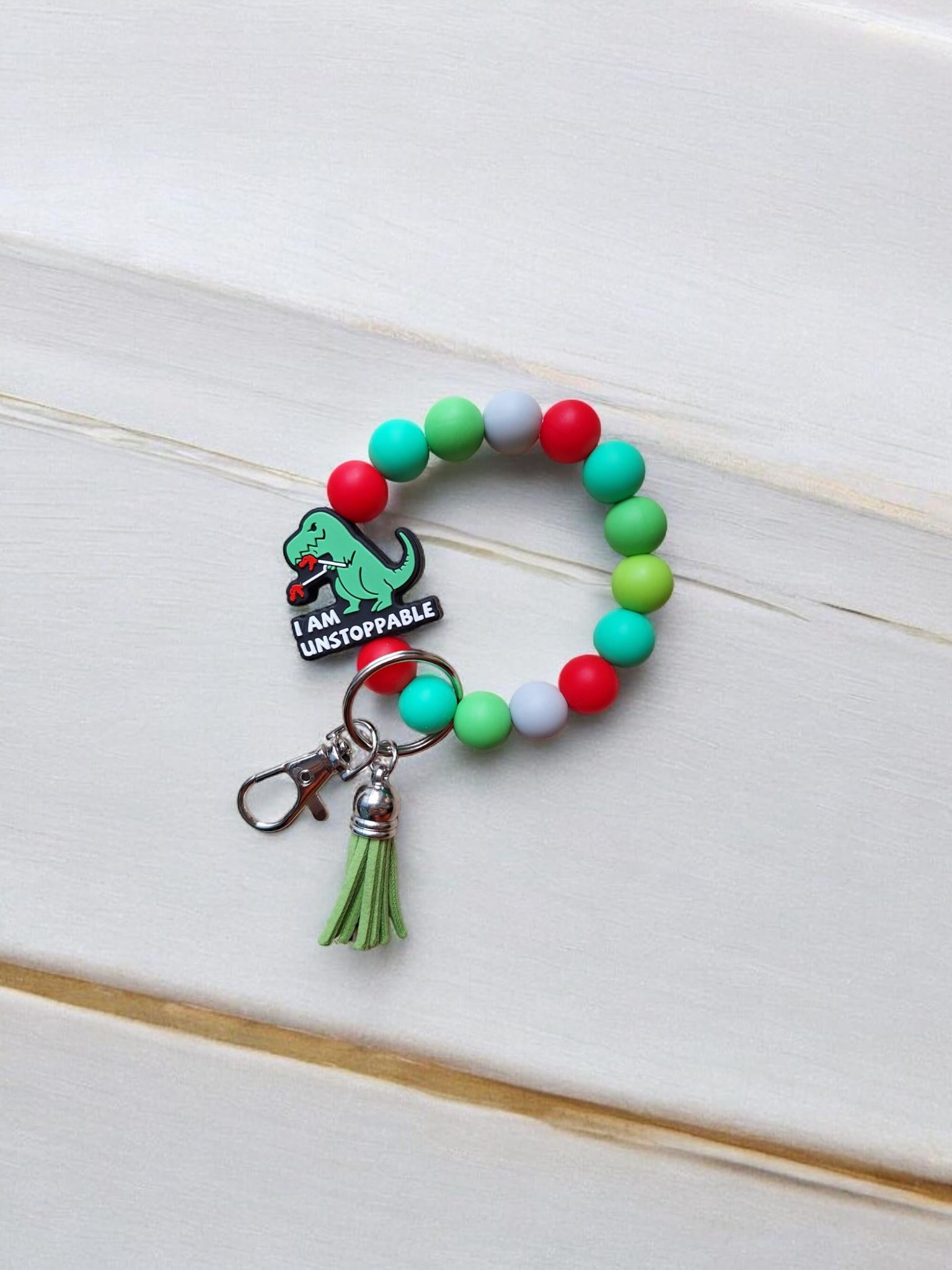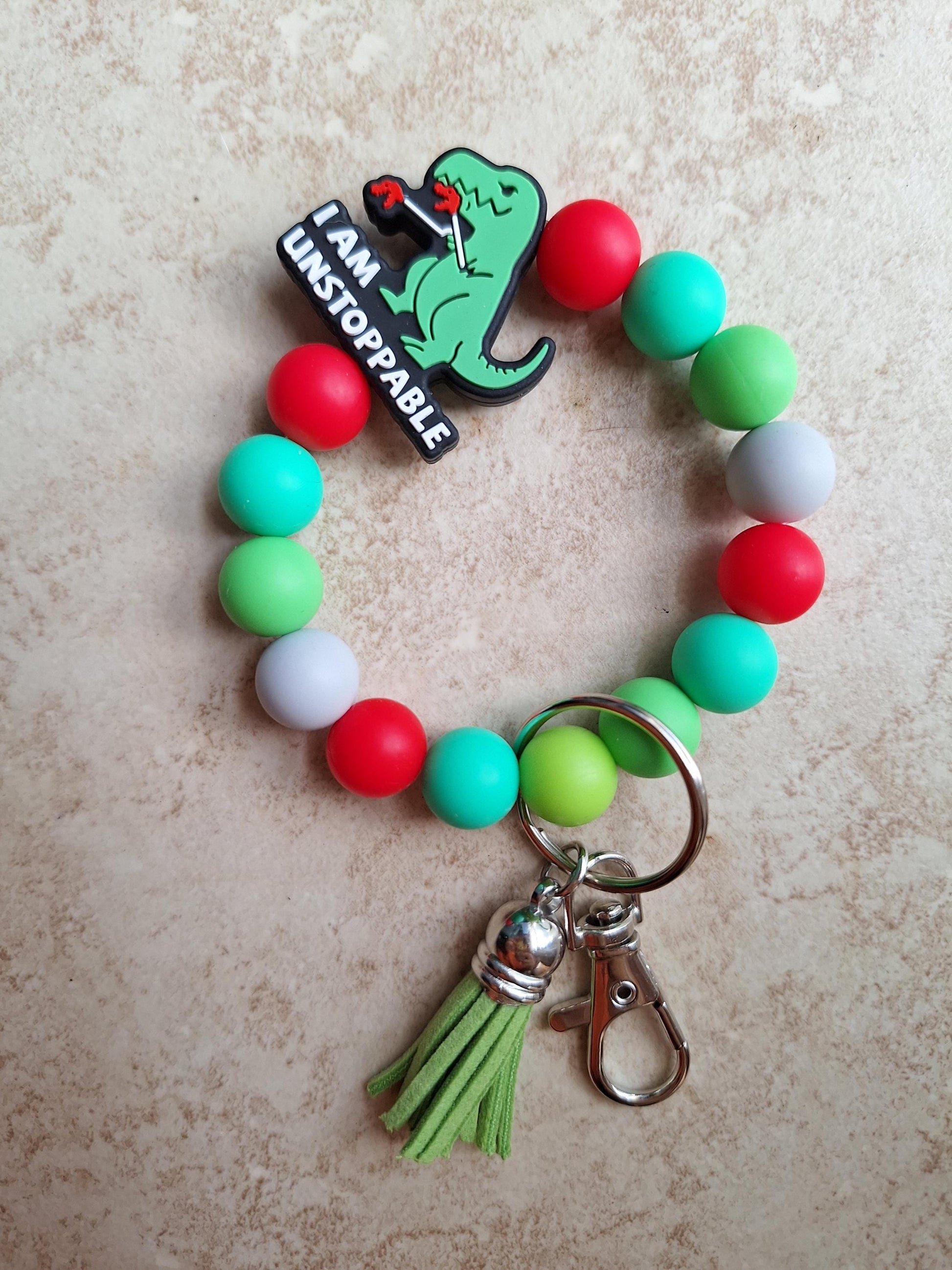 Silicone beaded wristlet keychain I'm unstoppable t-rex / dino dinosaur silicone beaded wristlet keychain / bag accessories key chain gift