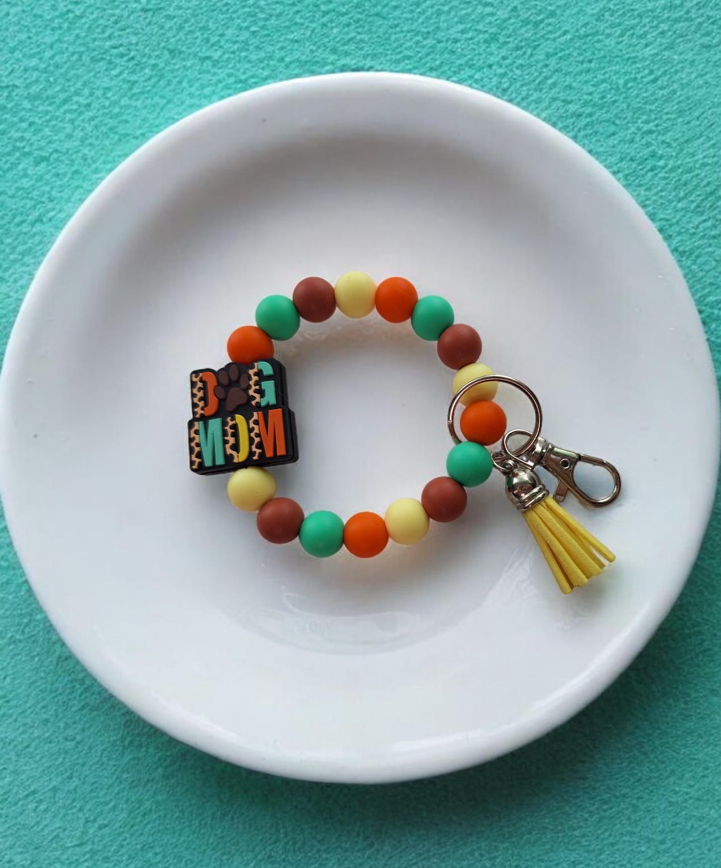 Silicone beaded wristlet keychain leopard print / dog mom silicone beaded wristlet dog mom keychain / dog mom bag accessories key chain gift