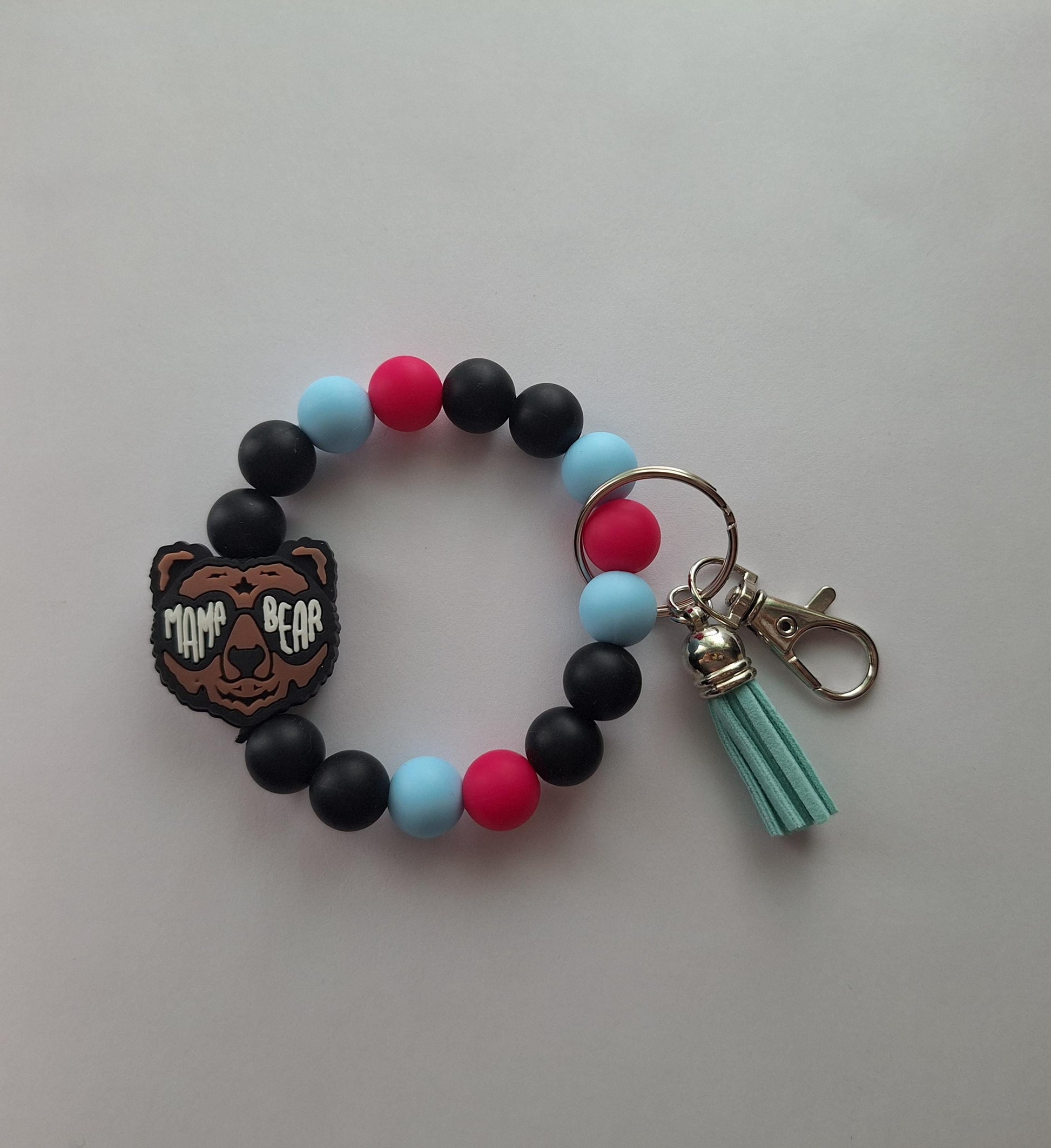 Silicone beaded wristlet keychain / mama bear silicone beaded wristlet keychain / mama bear glasses bag accessories key chain