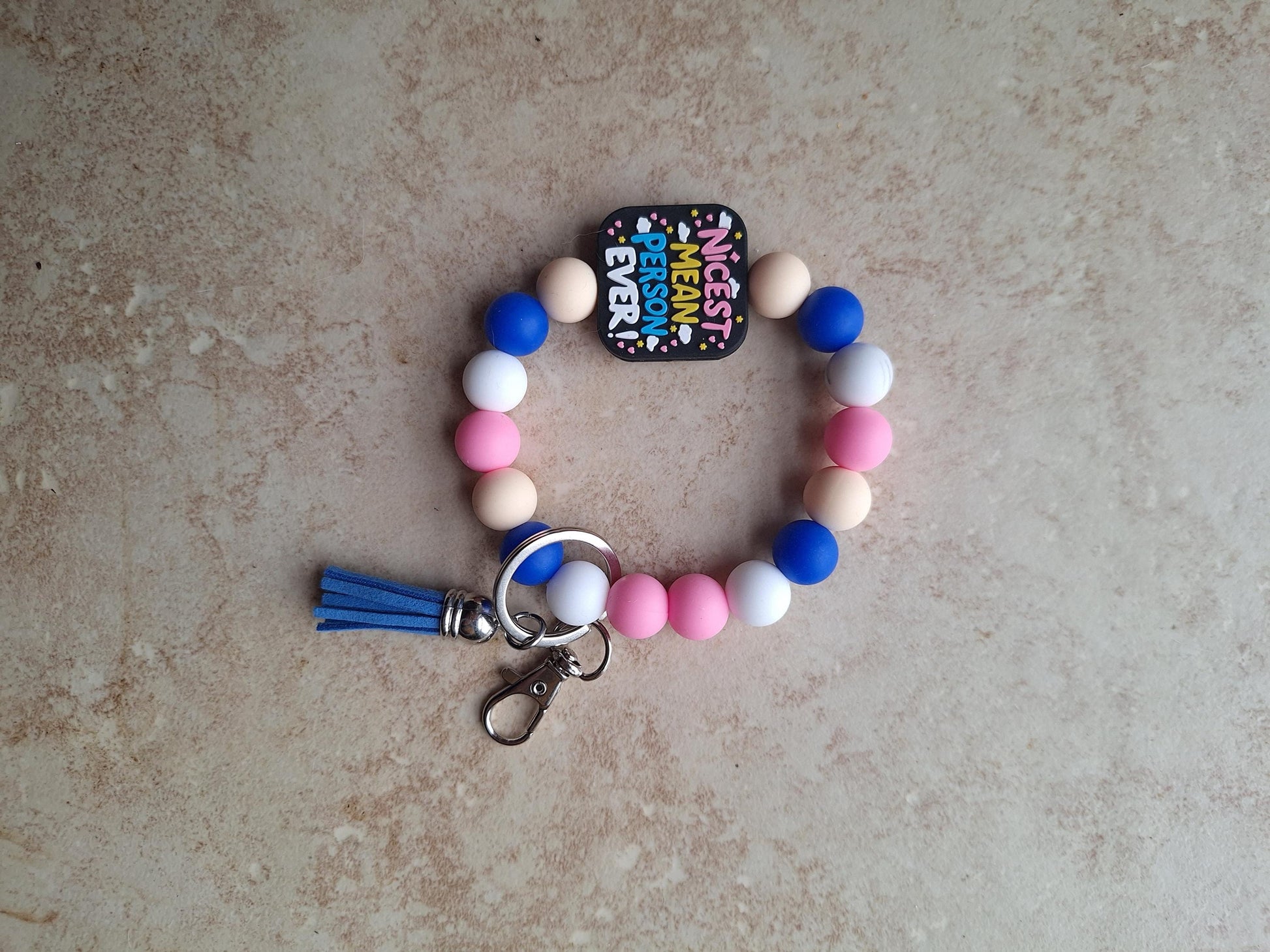 Silicone beaded wristlet keychain nicest mean person ever attitude silicone beaded wristlet keychain / bag accessories key chain gift