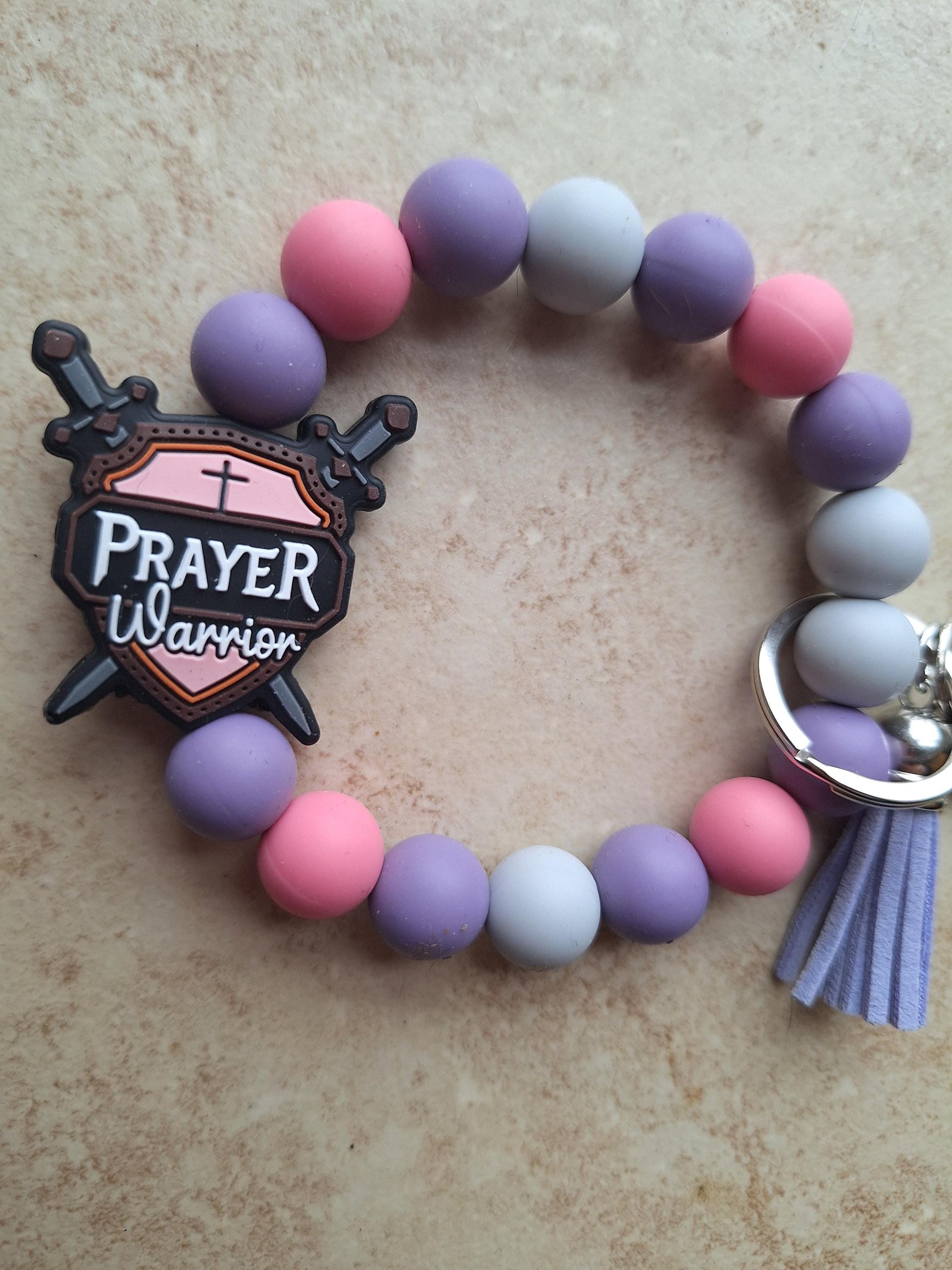 Silicone beaded wristlet keychain / prayer warrior silicone beaded wristlet keychain / religious faith bag accessories key chain