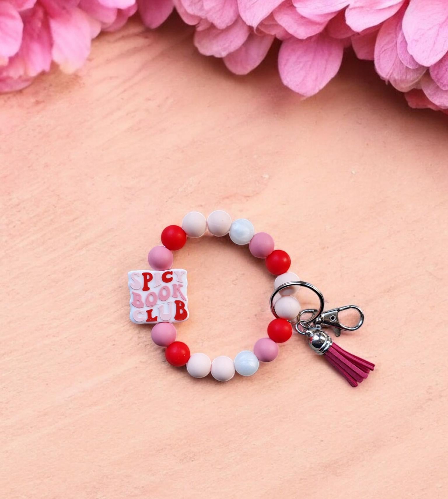 Silicone beaded wristlet keychain spicy book club silicone beaded wristlet keychain / book worm bag accessories key chain