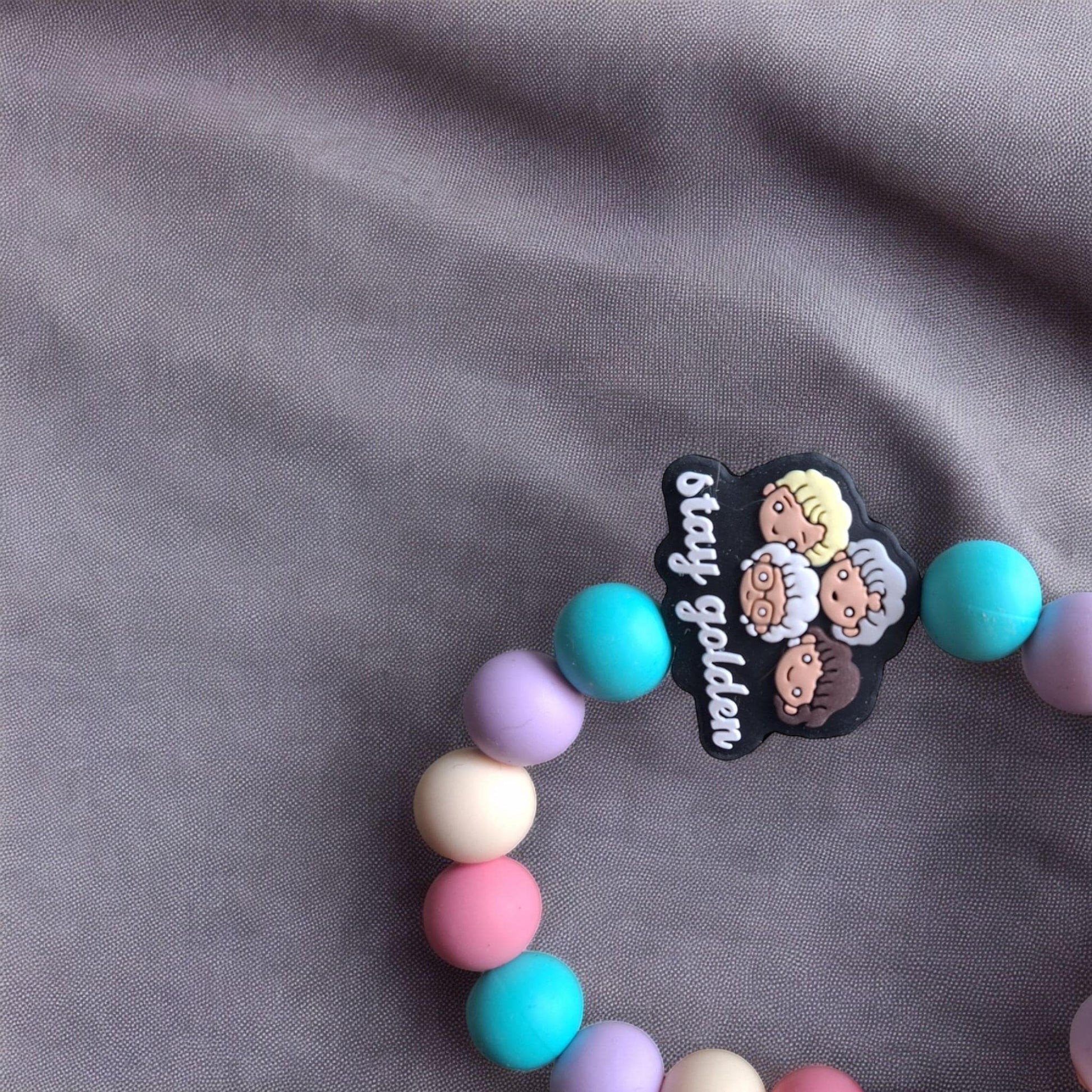 Silicone beaded wristlet keychain stay golden beaded wristlet keychain / pastel colorful bag accessories key chain