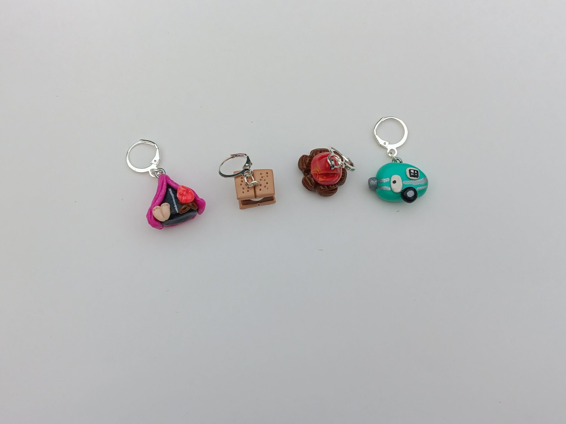 Set of 4 stitch markers, all come with hook attached. Made from polymer clay.