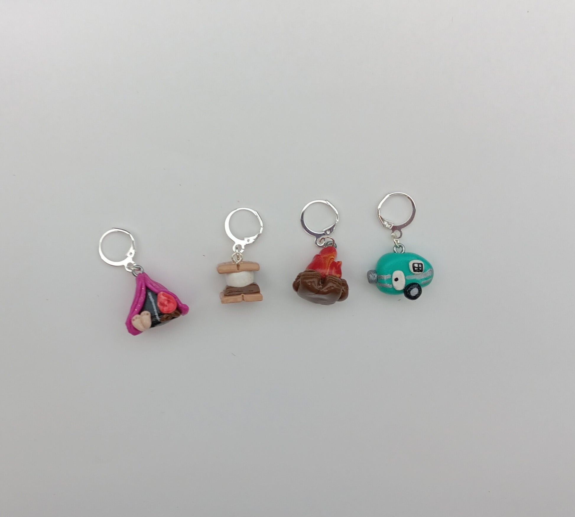 Stitch markers set 4 happy camper bundle / summer spring adventure stitch markers / camping stitch markers / set of four tent smore